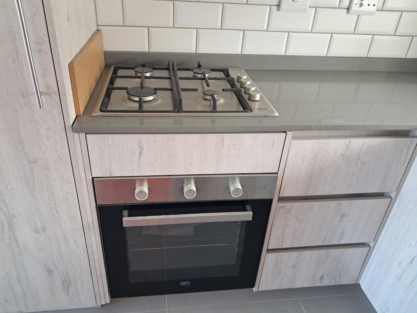 This charming residence features two spacious bedrooms and a well-appointed bathroom equipped with a modern shower. The beautifully tiled interior is complemented by built-in cupboards, ensuring ample storage space throughout the home. A gas stove in the kitchen adds a touch of luxury and convenience, making meal preparation a delight.