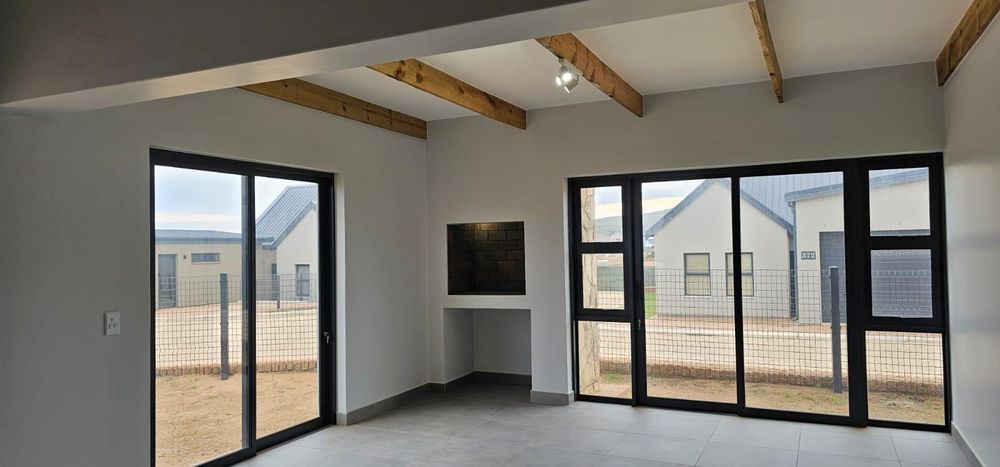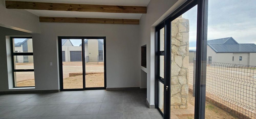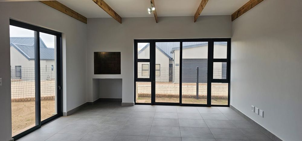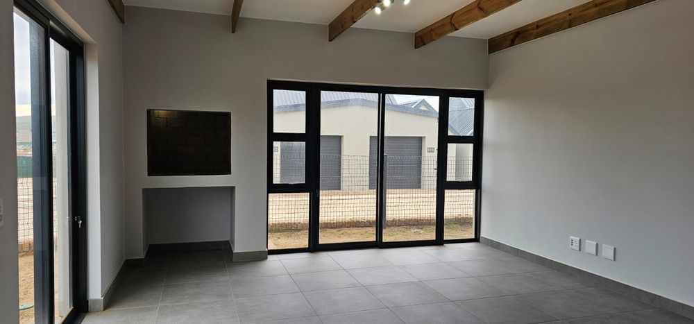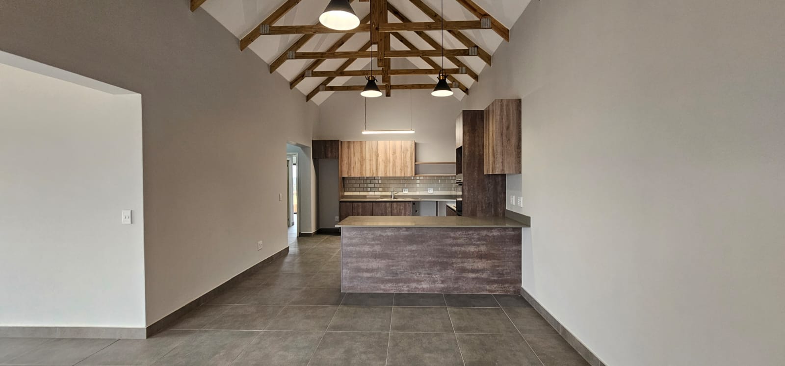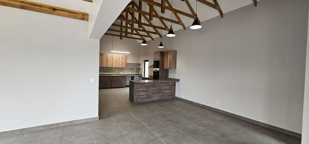 Discover your dream home in this stunning brand new property, designed to offer both style and comfort. The large open plan living area is a standout feature, boasting an abundance of natural light and striking open trusses. A built-in braai is a bonus in the living area! The modern, tiled floors provide a sleek and clean aesthetic throughout the unit, with blinds to be fitted for added privacy and convenience.