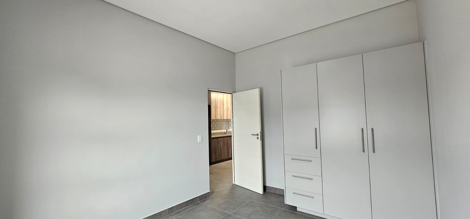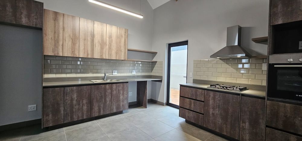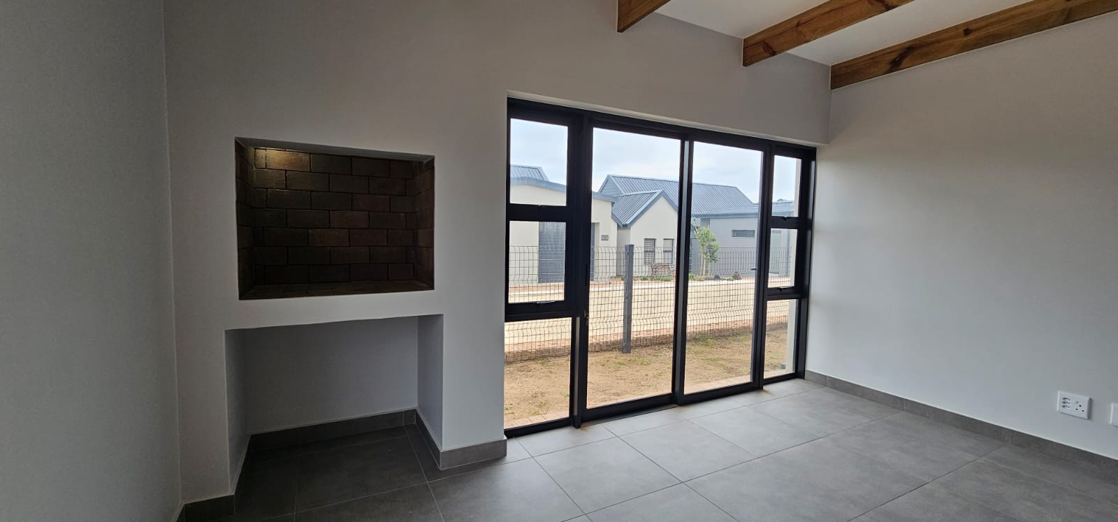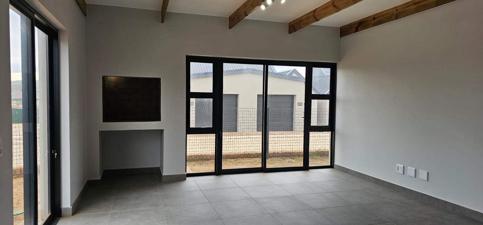 Discover your dream home in this stunning brand new property, designed to offer both style and comfort. The large open plan living area is a standout feature, boasting an abundance of natural light and striking open trusses. A built-in braai is a bonus in the living area! The modern, tiled floors provide a sleek and clean aesthetic throughout the unit, with blinds to be fitted for added privacy and convenience.