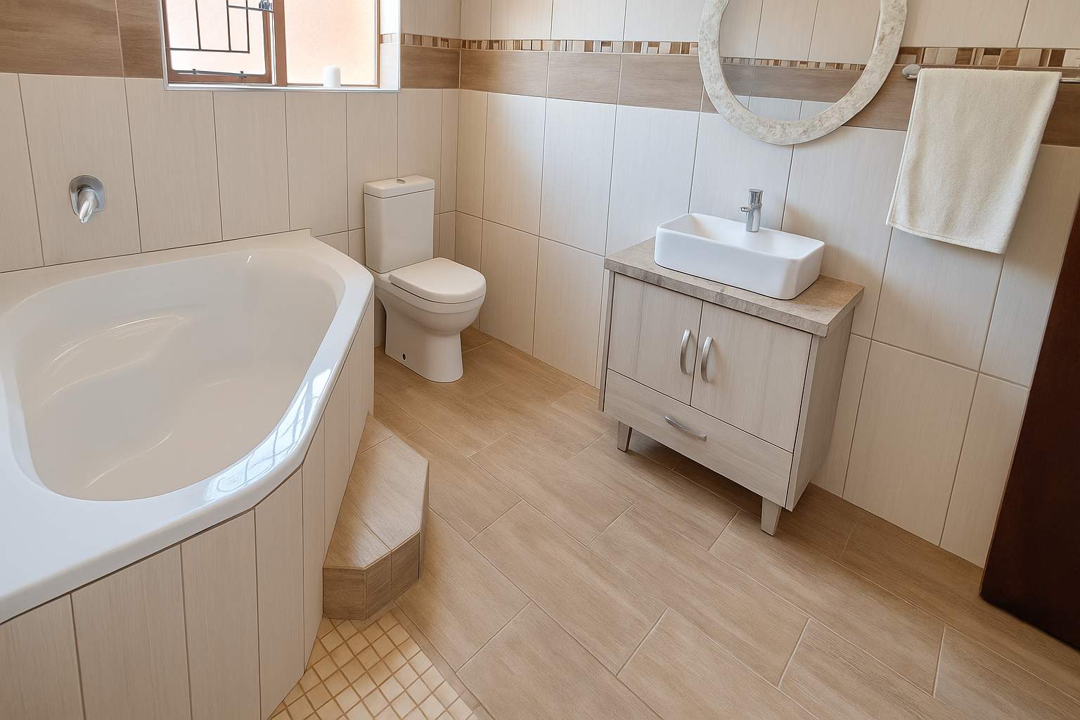 As you approach the house, with facebrick exterior, that ensures low maintenance. The property features a spacious double garage, providing ample space for secure parking and additional storage.