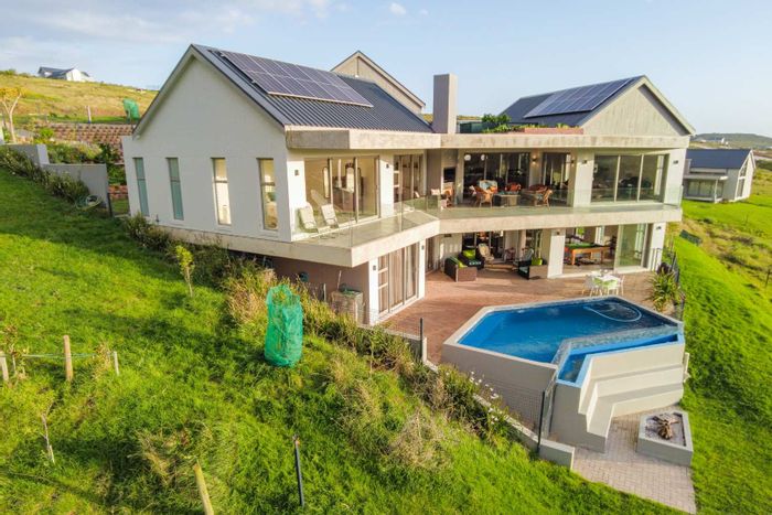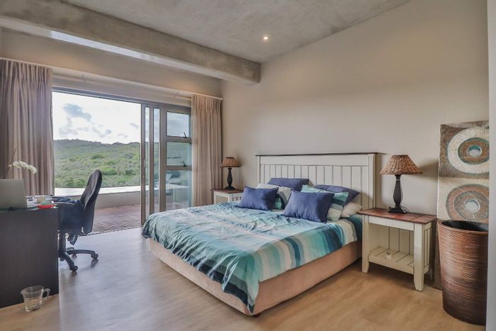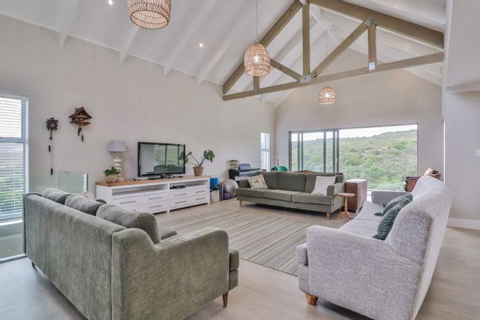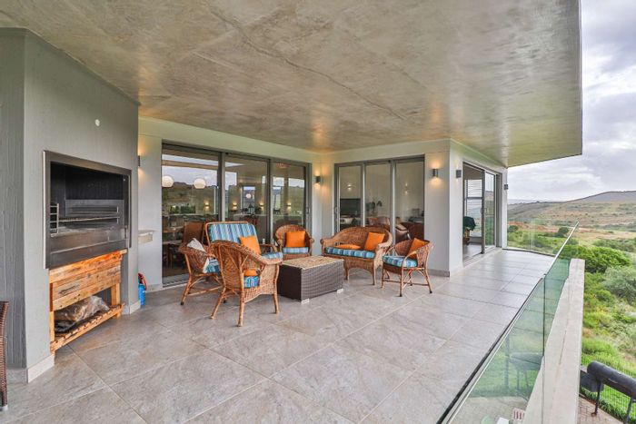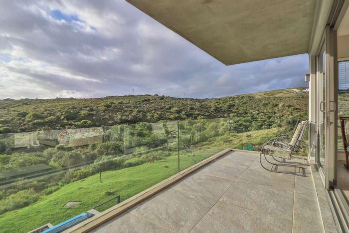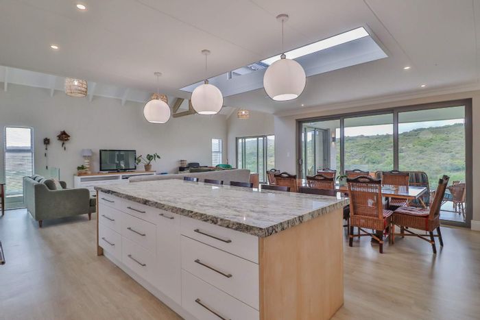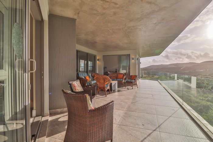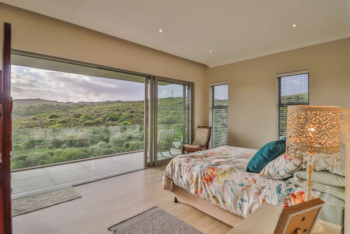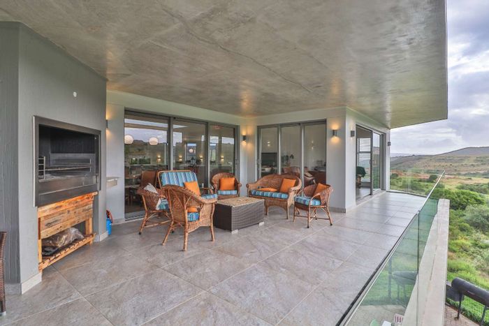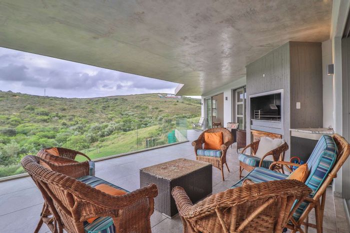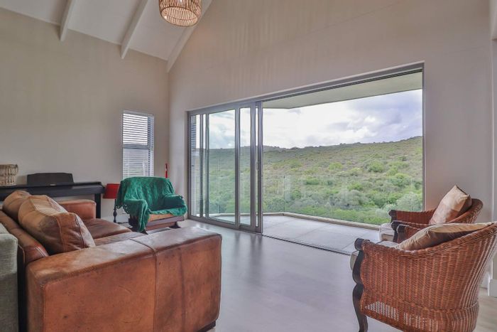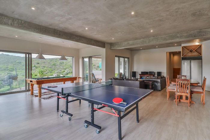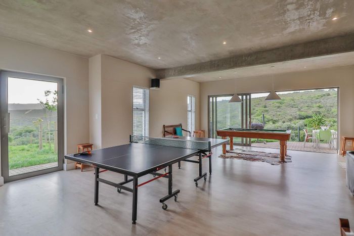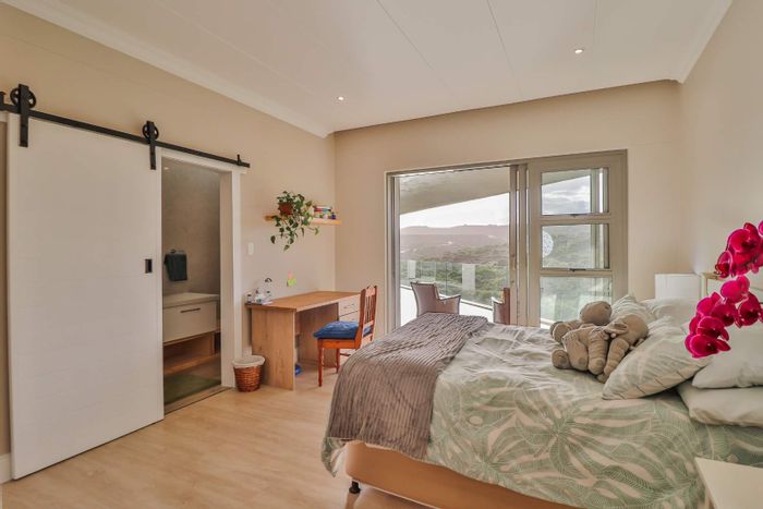 Enjoy tranquil wildlife living in Outeniquasbosh Wildlife Village with expansive balcony and indoor barbeque, contemporary kitchen and finishes — five bedrooms, six bathrooms and a double garage.