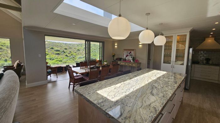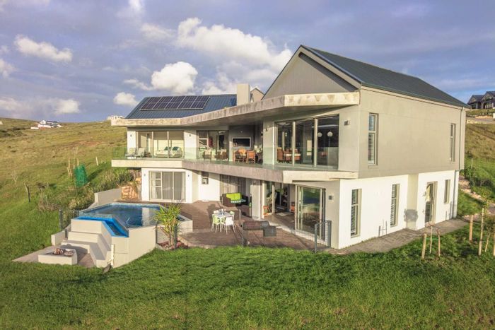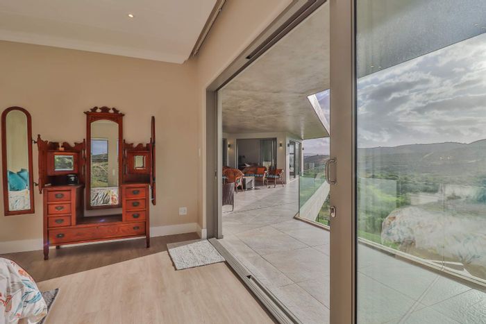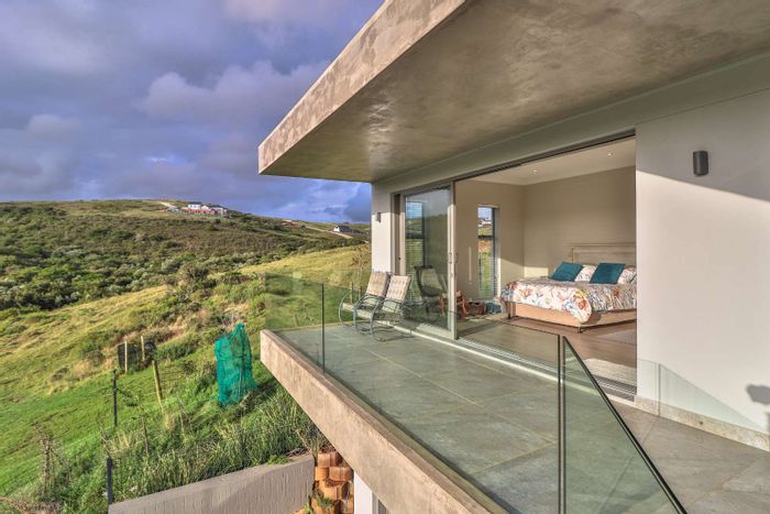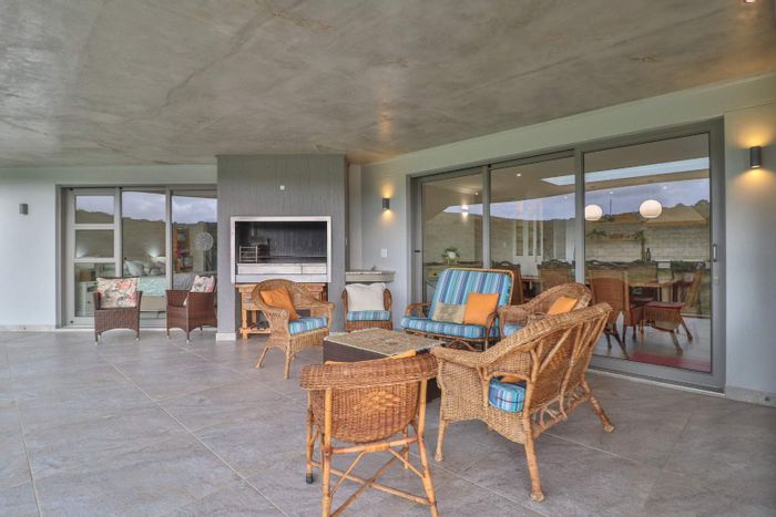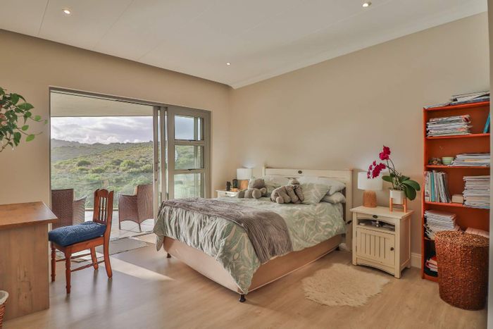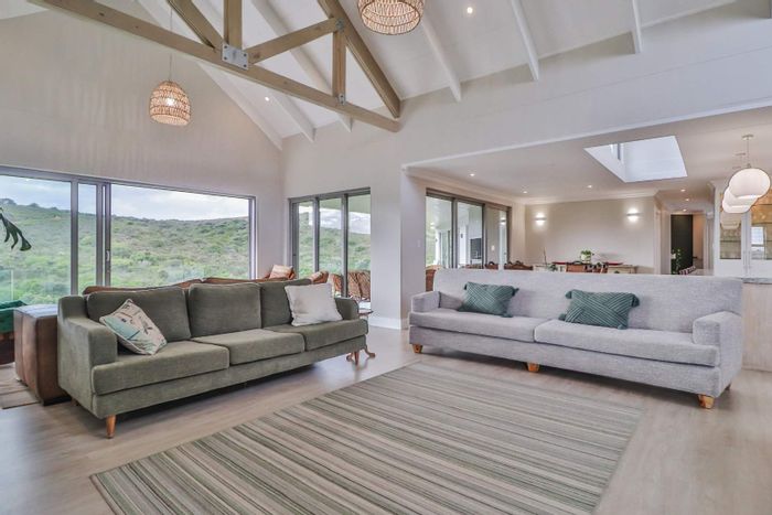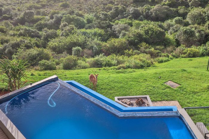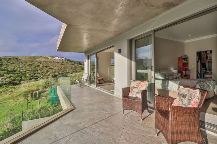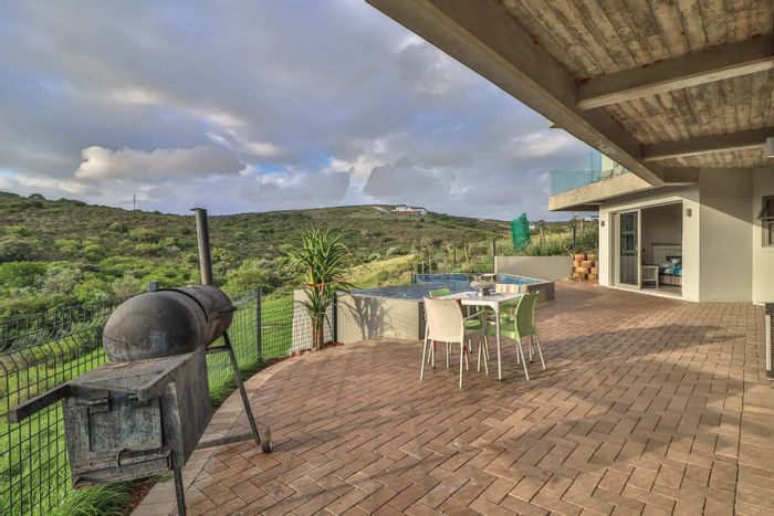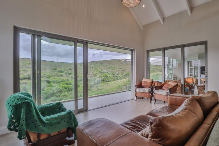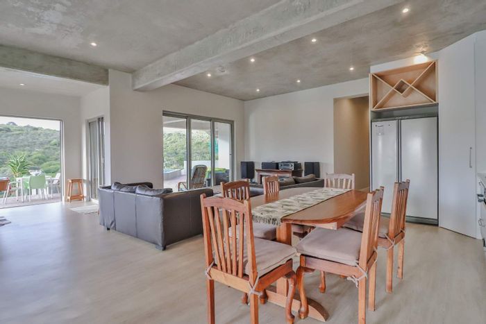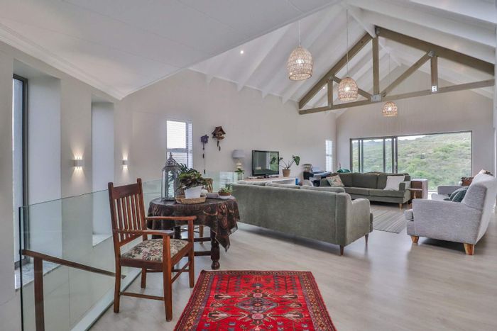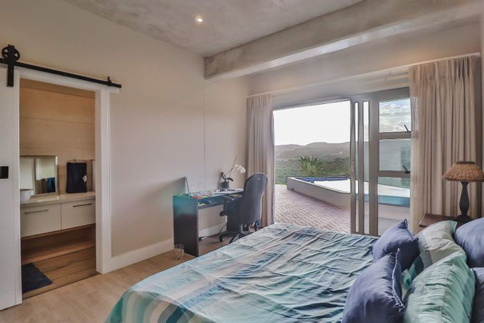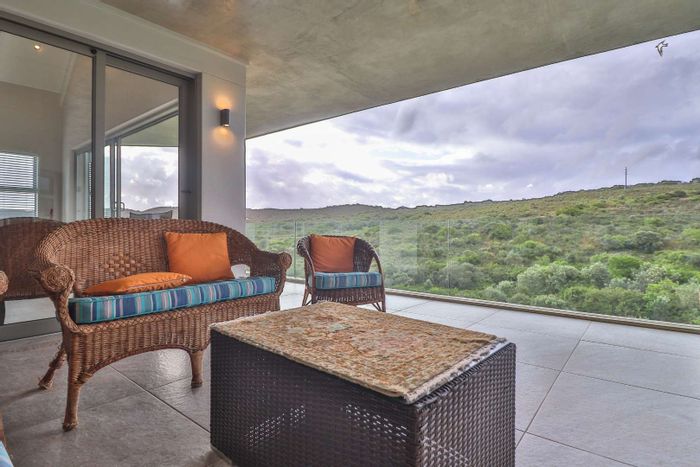 Enjoy tranquil wildlife living in Outeniquasbosh Wildlife Village with expansive balcony and indoor barbeque, contemporary kitchen and finishes — five bedrooms, six bathrooms and a double garage.