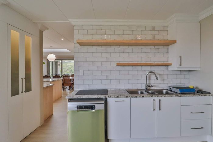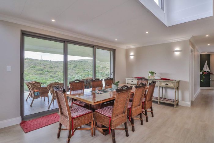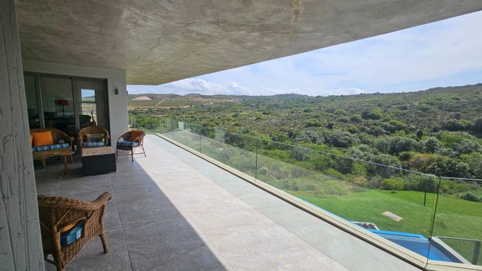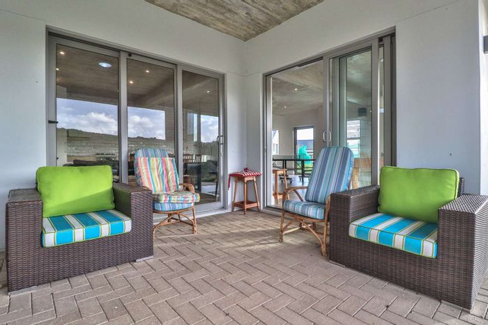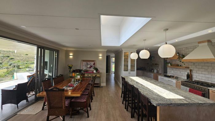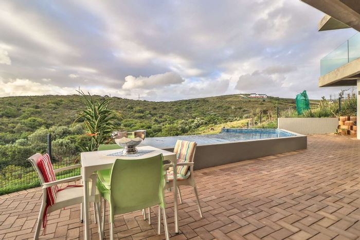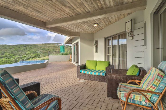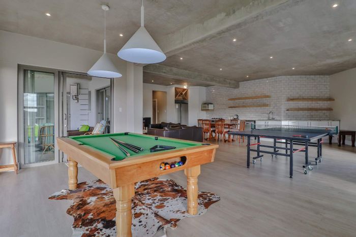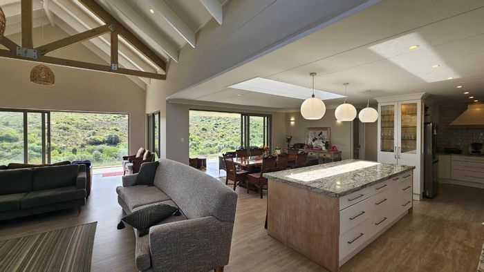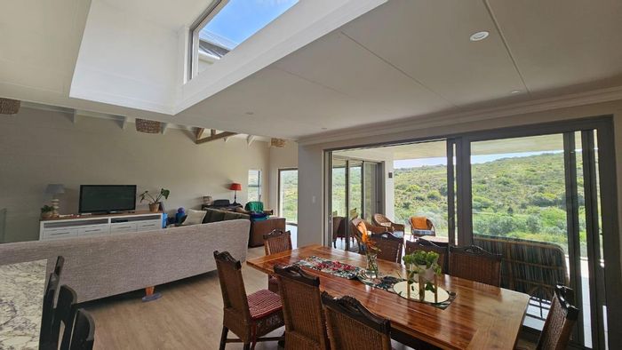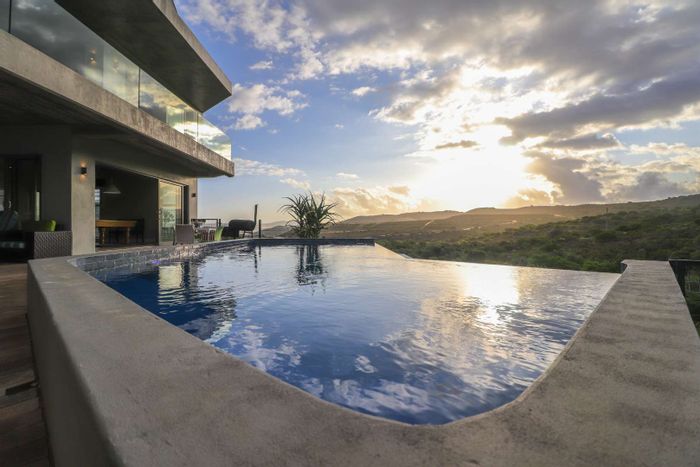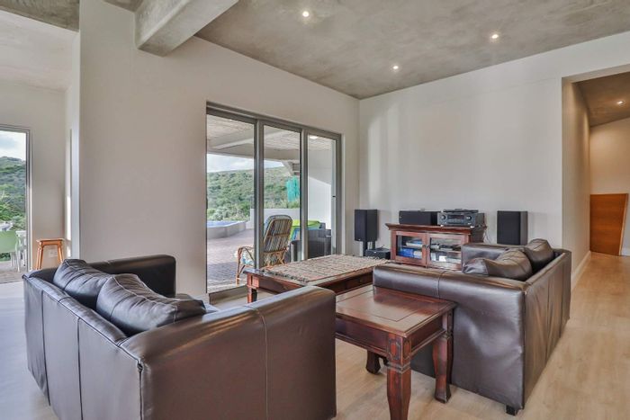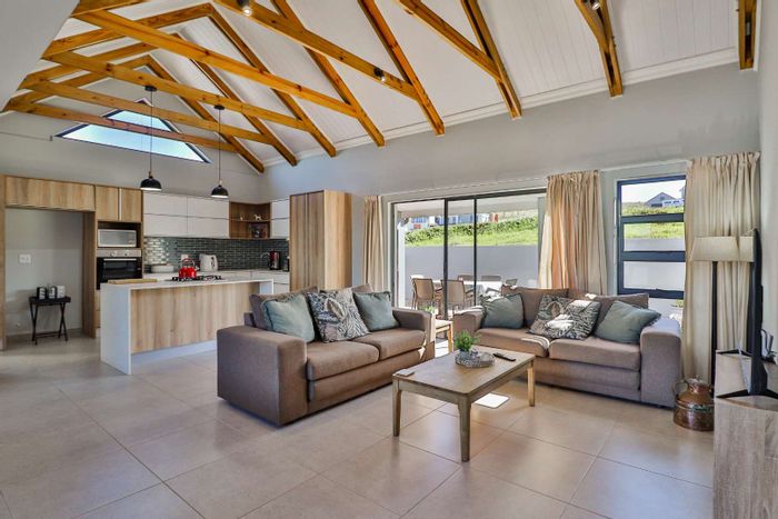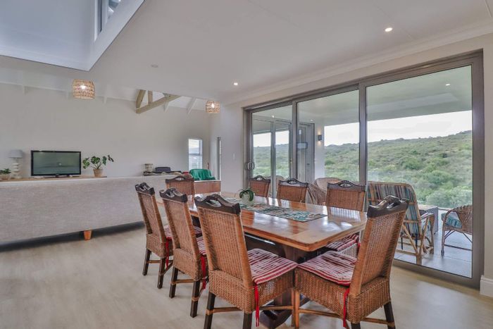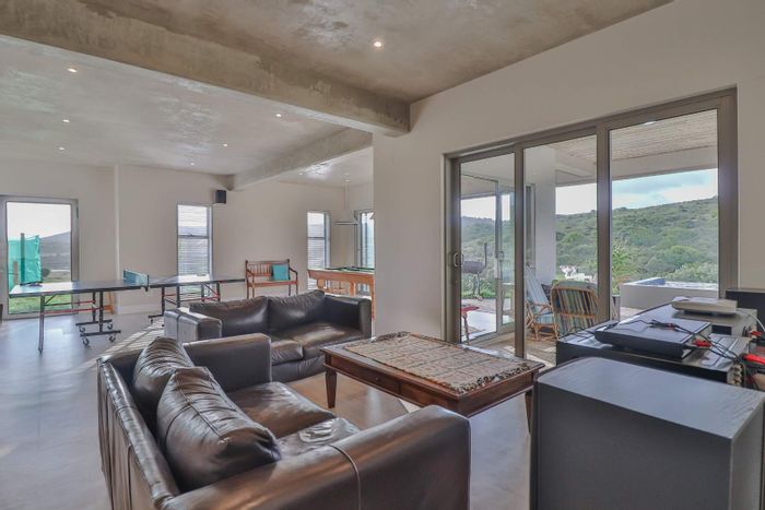 Enjoy tranquil wildlife living in Outeniquasbosh Wildlife Village with expansive balcony and indoor barbeque, contemporary kitchen and finishes — five bedrooms, six bathrooms and a double garage.