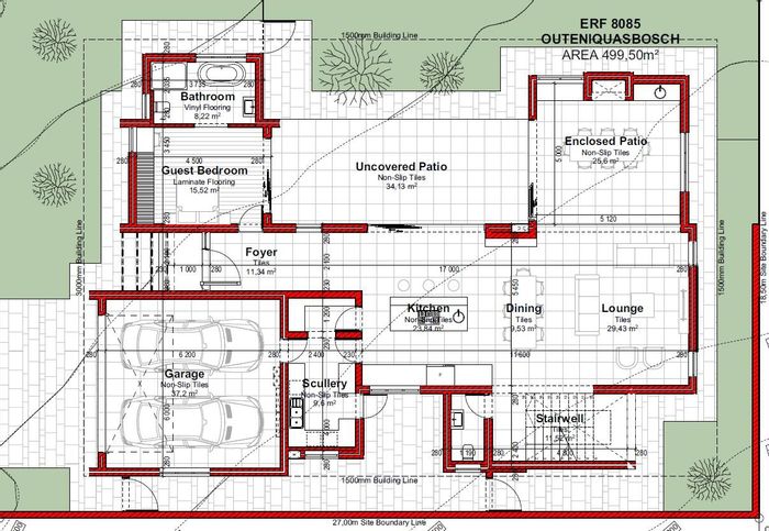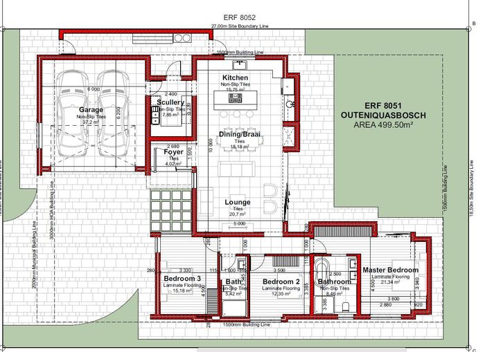 Three bedrooms, two bathrooms, double garage, 242 m² floor size on 500 m² land.