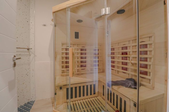 Live within a secure wildlife estate, enjoying panoramic views, rim-flow pool and private sauna in a versatile two-level home—flexible as one residence or separate units; 4 beds, 4.5 baths.