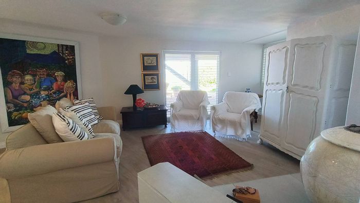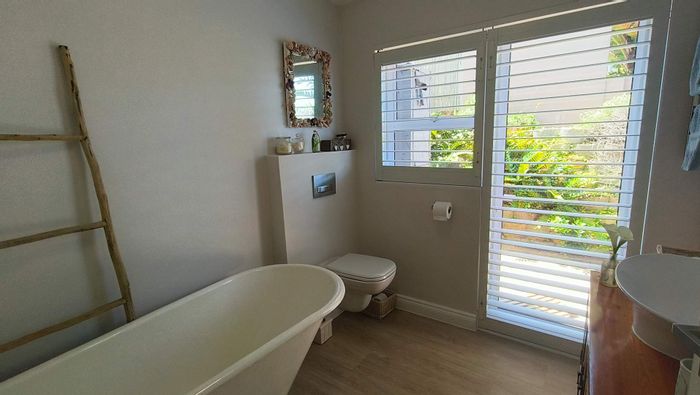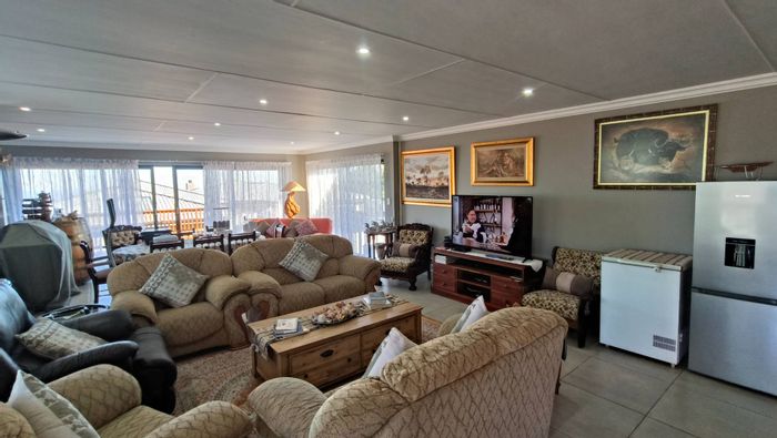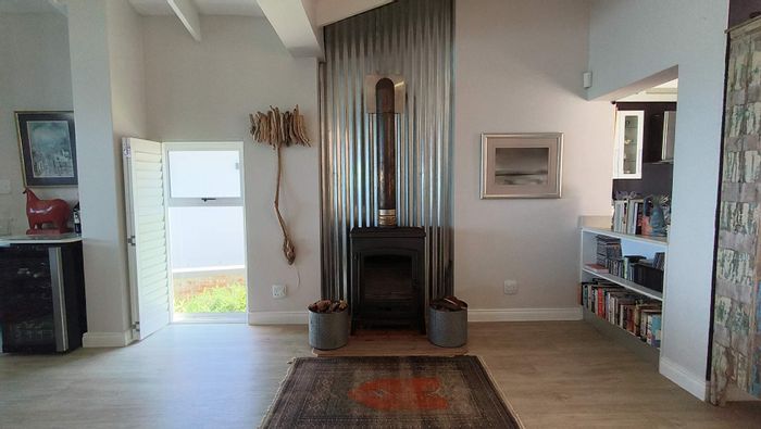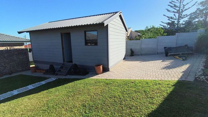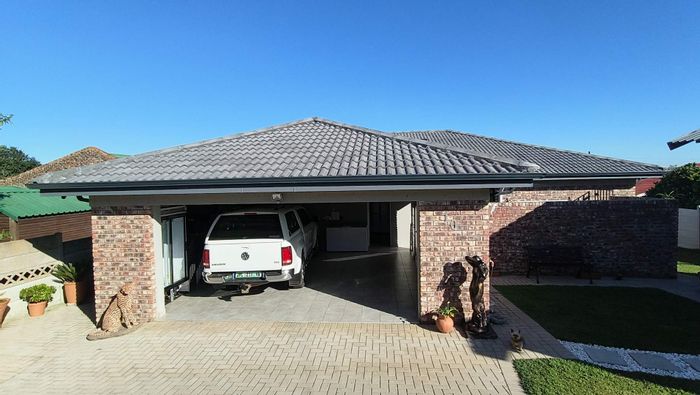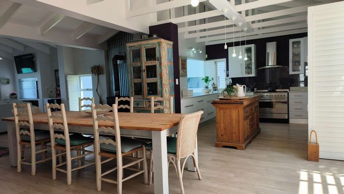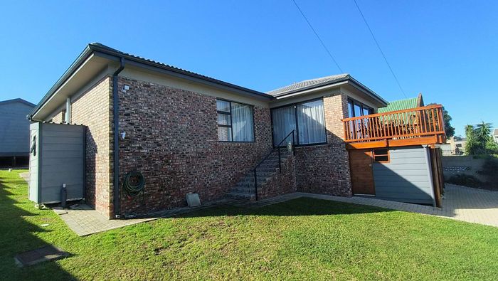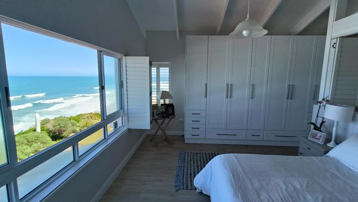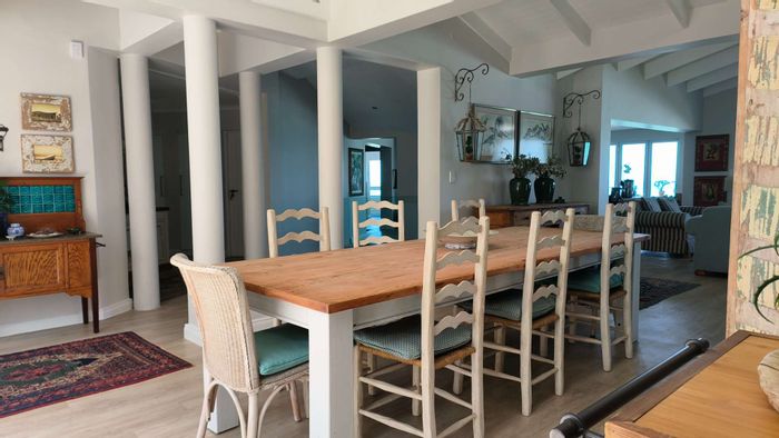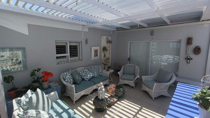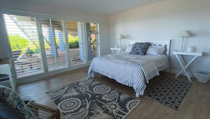 Relaxed coastal living in Dana Bay, Garden Route — walking distance to the beach and greenbelt. Large front patio with sea views, indoor entertainment and built-in braai. Five-bed, three-bath.