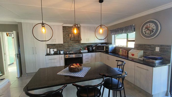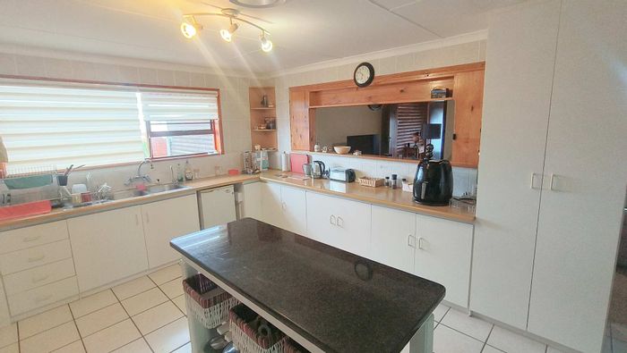 Entertainer's coastal retreat in Dana Bay with flowing open-plan living and an indoor braai, chef's kitchen with island and gas hob — three bedrooms, two bathrooms and double garage.