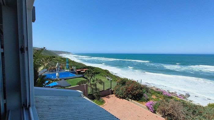 Coastal living in Dana Bay with expansive ocean views and an entertainer's open-plan living area featuring a built-in braai and balcony. Three bedrooms, two bathrooms, double garage.