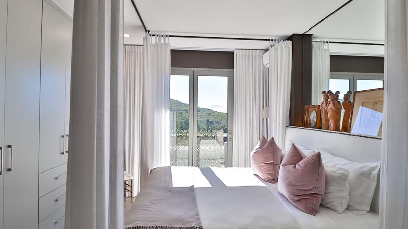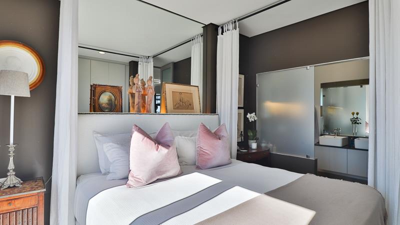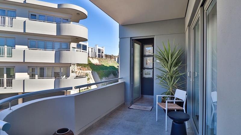The open-plan living and dining area is designed for comfort and style, complete with an indoor braai for those cozy evenings. The living room seamlessly extends to a sun-drenched balcony, perfect for enjoying your morning coffee or evening sunsets. With two spacious bedrooms, both with en-suite bathrooms, the master suite stands out with its own stacker doors leading to a private balcony.