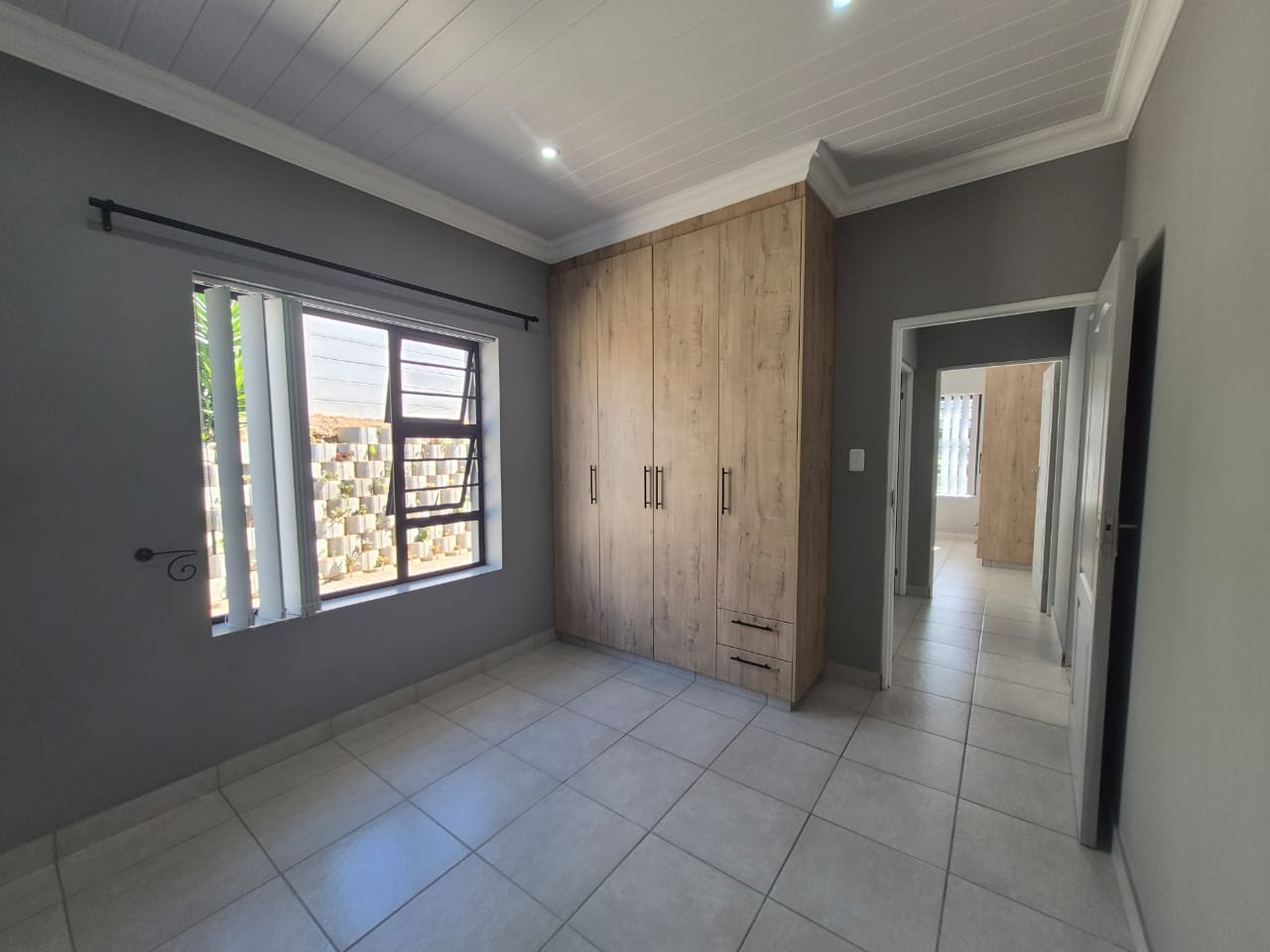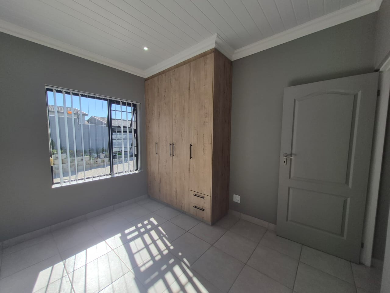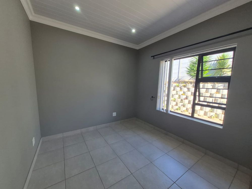 The home is fully tiled for easy maintenance and is equipped with pre-paid electricity. It features both a gas geyser and a solar geyser, ensuring energy efficiency and sustainability.