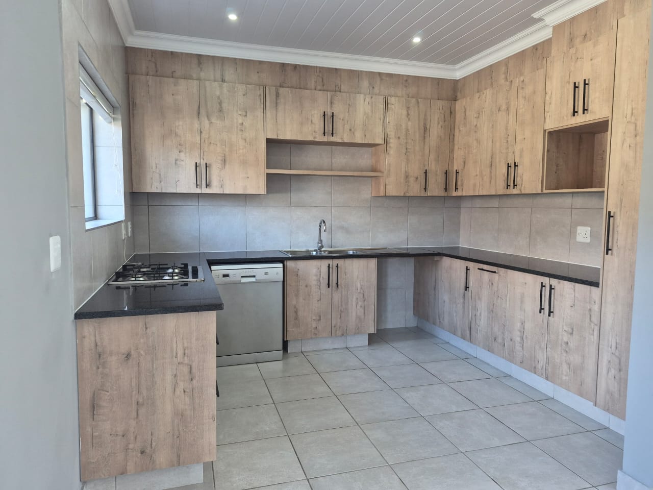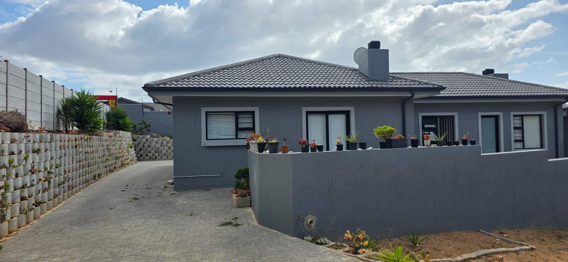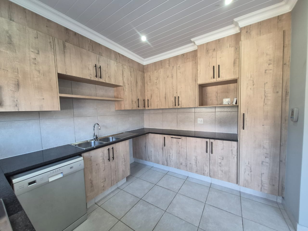 The home is fully tiled for easy maintenance and is equipped with pre-paid electricity. It features both a gas geyser and a solar geyser, ensuring energy efficiency and sustainability.