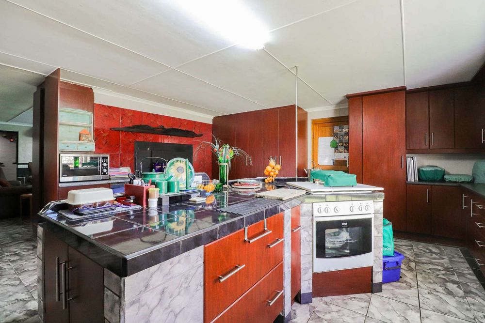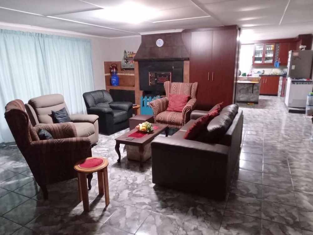 This charming property boasts a well-designed open-plan kitchen, featuring ample built-in cupboards and modern amenities. The indoor braai area is perfect for entertaining guests or enjoying cozy family evenings.