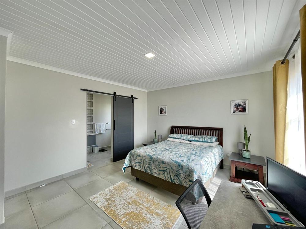 The heart of the home is the kitchen, lounge, and dining area with a built-in braai, enhanced by beautiful exposed beams that add character, warmth, and a sense of space. Designed with family living and entertaining in mind, this open-plan space ensures no one ever misses a beat. From here, your eyes are immediately drawn to the distant ocean views, guiding you to the expansive enclosed veranda—perfect for relaxing, entertaining, or simply soaking up the scenery.