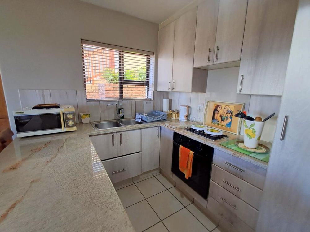 As you enter, you'll be greeted by an inviting open-plan living and kitchen area that exudes warmth and spaciousness. The modern kitchen boasts a gas stove and gas geyser, ensuring efficient and eco-friendly cooking and hot water. Please note that gas usage will be at the tenant's expense.