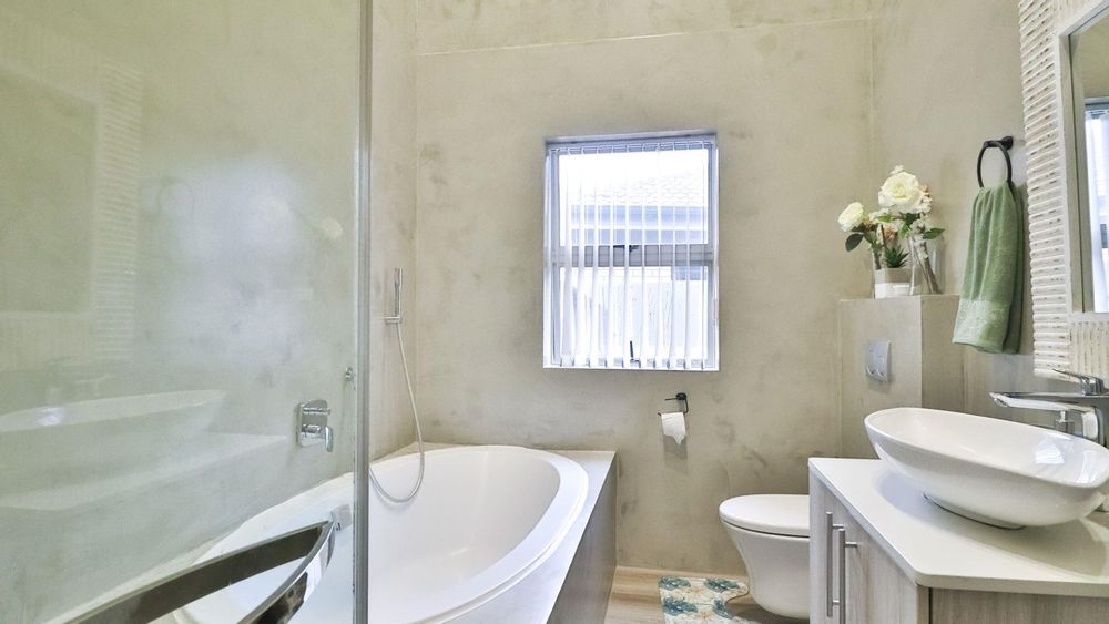 This stunning residence boasts three spacious bedrooms, each offering ample built-in cupboards. The main bedroom is a particular highlight, featuring a dream dressing room and an en-suite bathroom. Additionally, there's a dedicated office space incorporated into this area, providing versatility for work-from-home needs.