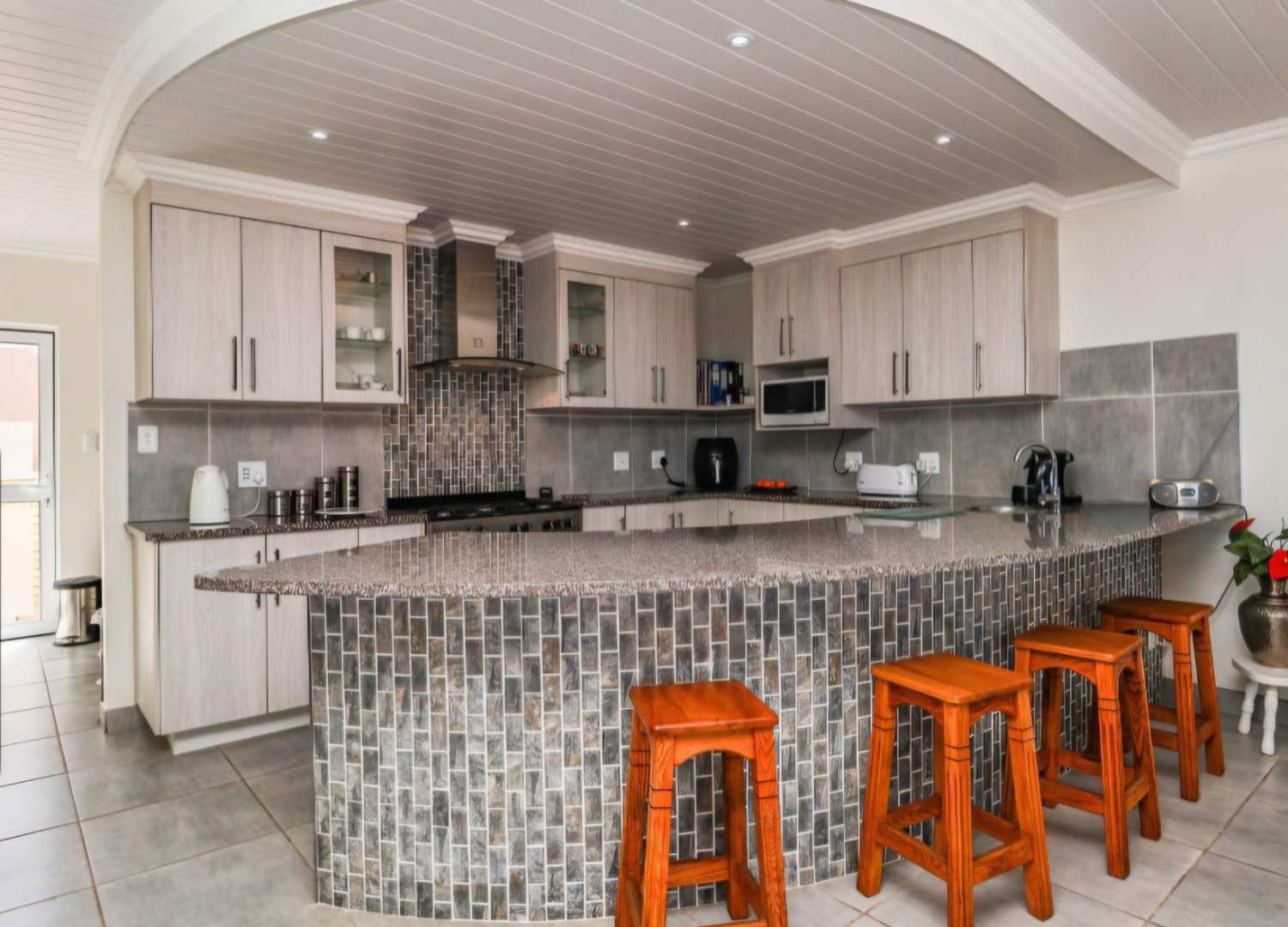 The kitchen is both functional and elegant, boasting ample cupboard space, a walk-in pantry, and a separate scullery to keep the main area tidy and organized. Whether you love to cook or entertain, this kitchen is crafted to make your daily routine seamless and enjoyable.