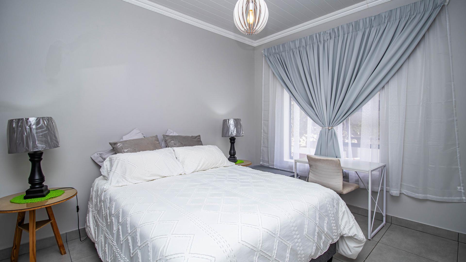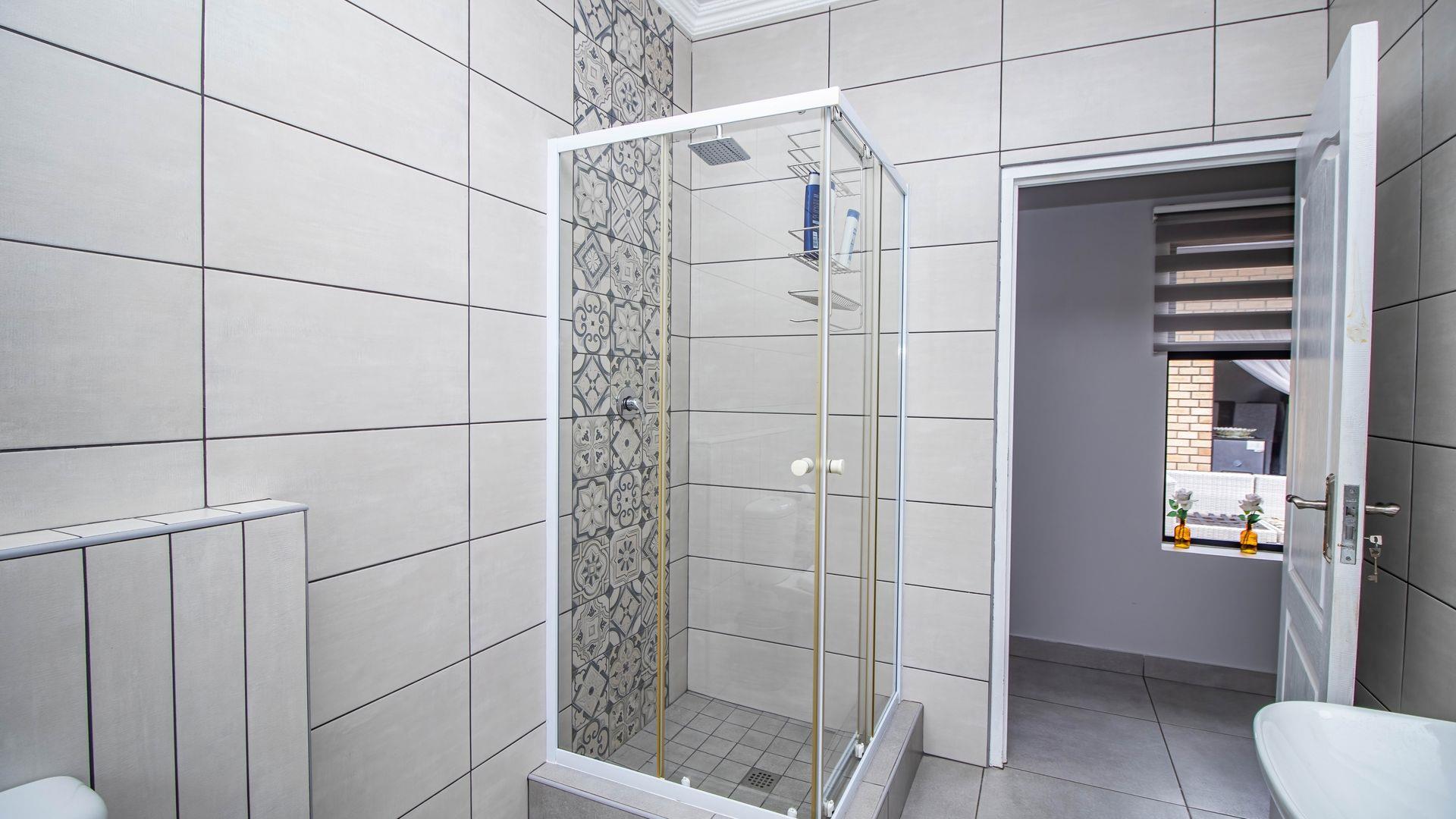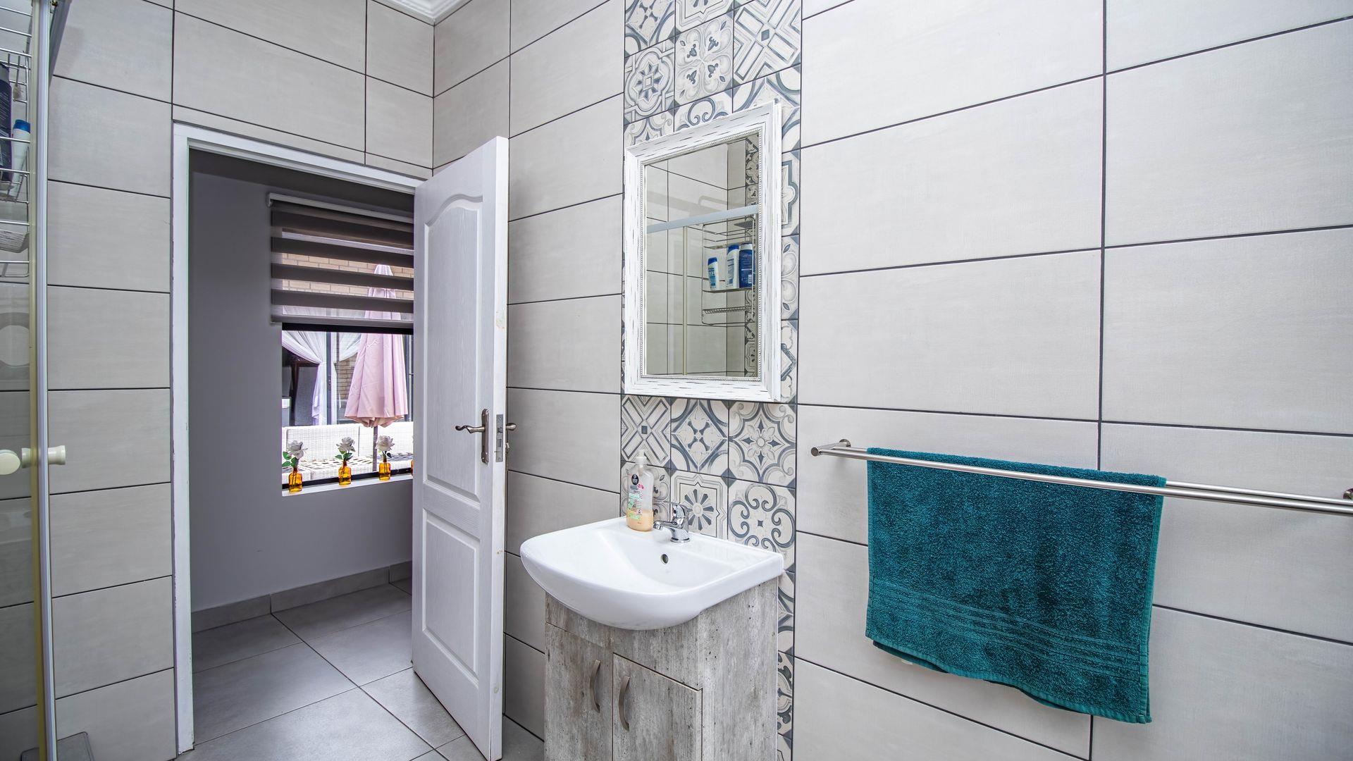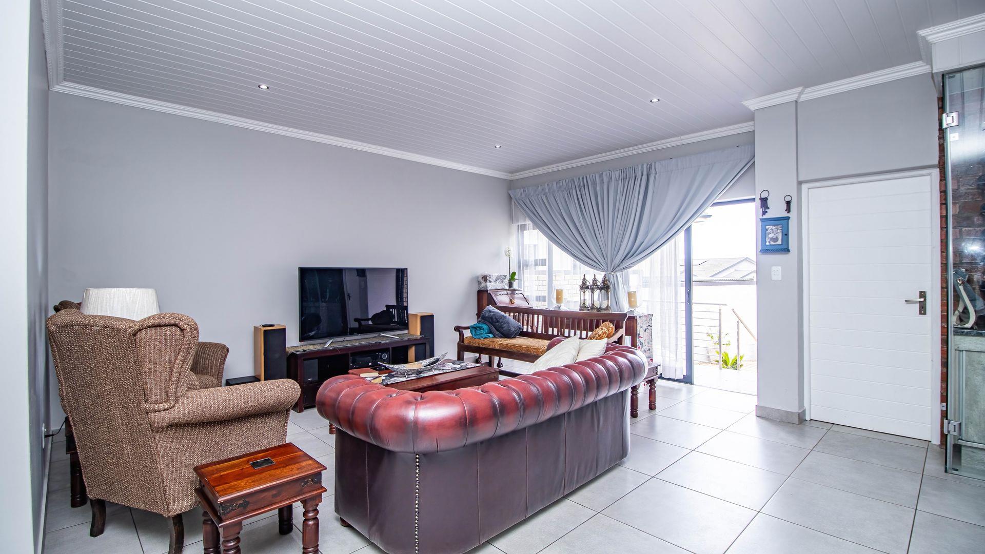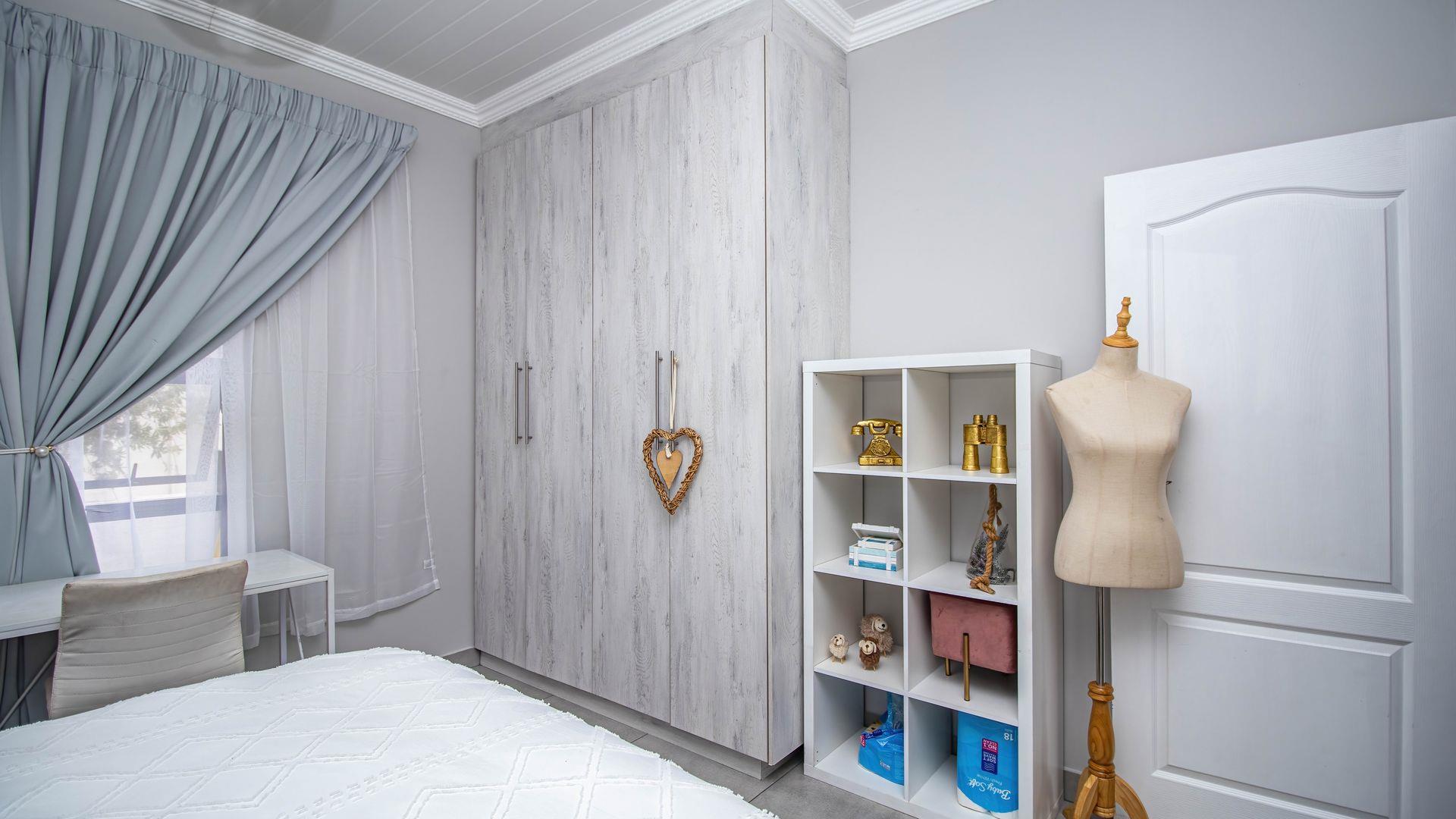 Step inside this "neat as a pin" residence and be greeted by an inviting open-plan living space that seamlessly connects the large dining area and indoor braai (barbecue) area. This layout is perfect for entertaining guests or enjoying cozy family gatherings. For wine enthusiasts, a small glass-enclosed wine storage adds a touch of sophistication to your hosting capabilities.