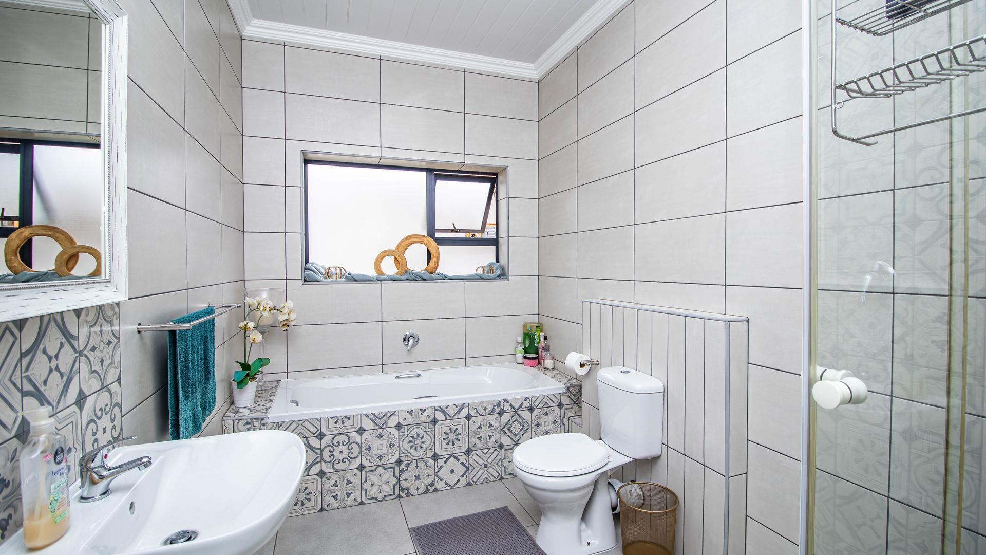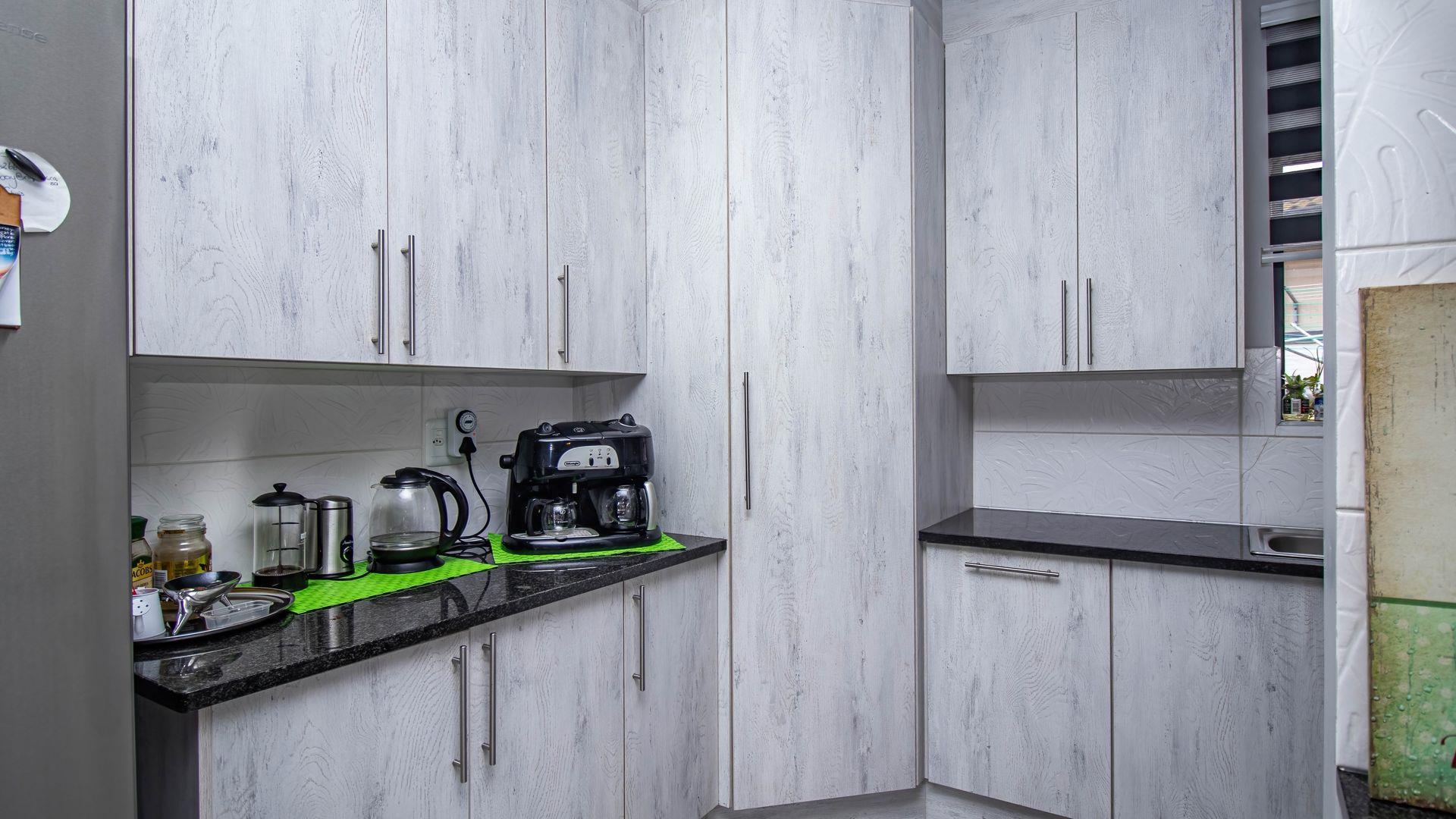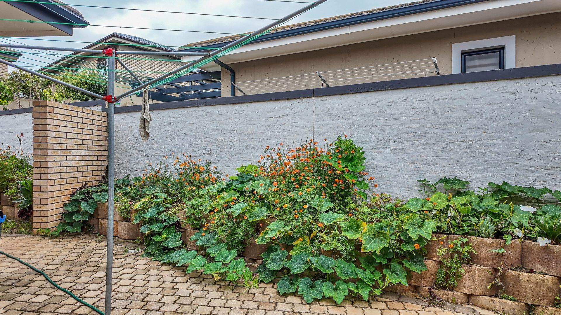 The well-appointed kitchen is a chef's delight, featuring ample cupboard space, a gas hob, and an electric oven. Adjacent to the kitchen, you will find a separate scullery, ensuring a clutter-free cooking environment. The living room extends effortlessly to a private, sunny courtyard—an ideal spot for relaxation and soaking up the sun.