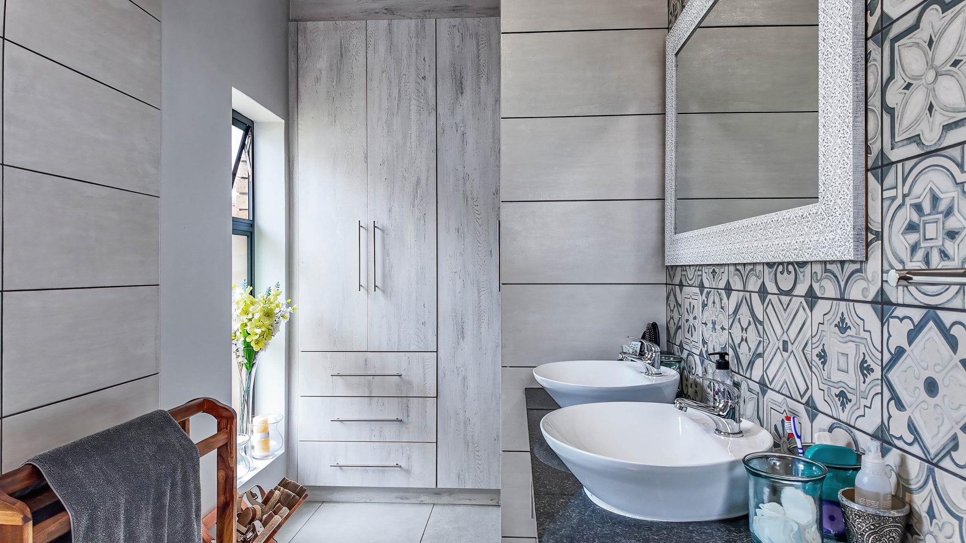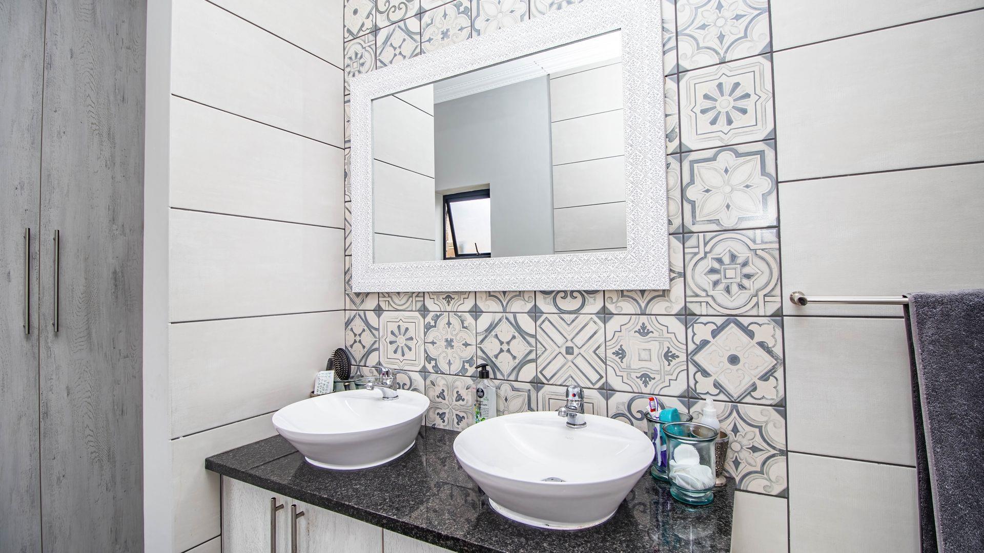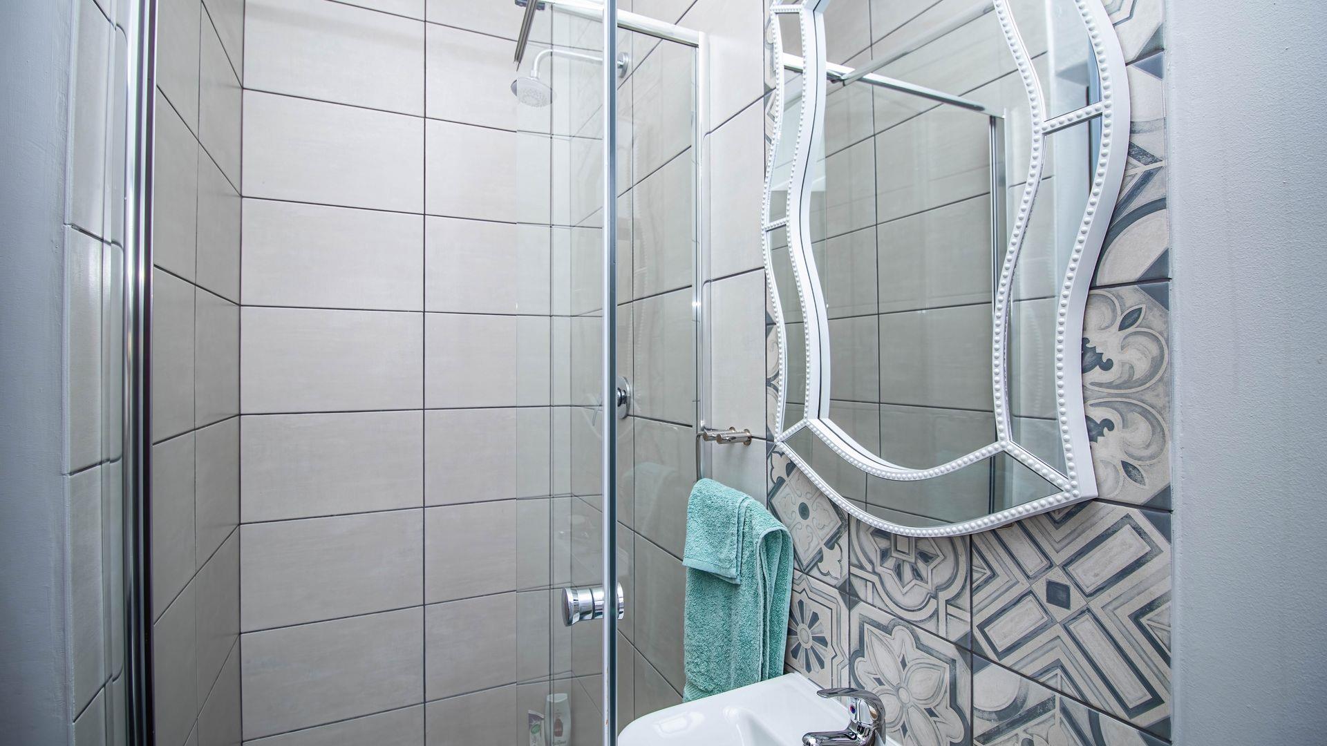 The well-appointed kitchen is a chef's delight, featuring ample cupboard space, a gas hob, and an electric oven. Adjacent to the kitchen, you will find a separate scullery, ensuring a clutter-free cooking environment. The living room extends effortlessly to a private, sunny courtyard—an ideal spot for relaxation and soaking up the sun.
