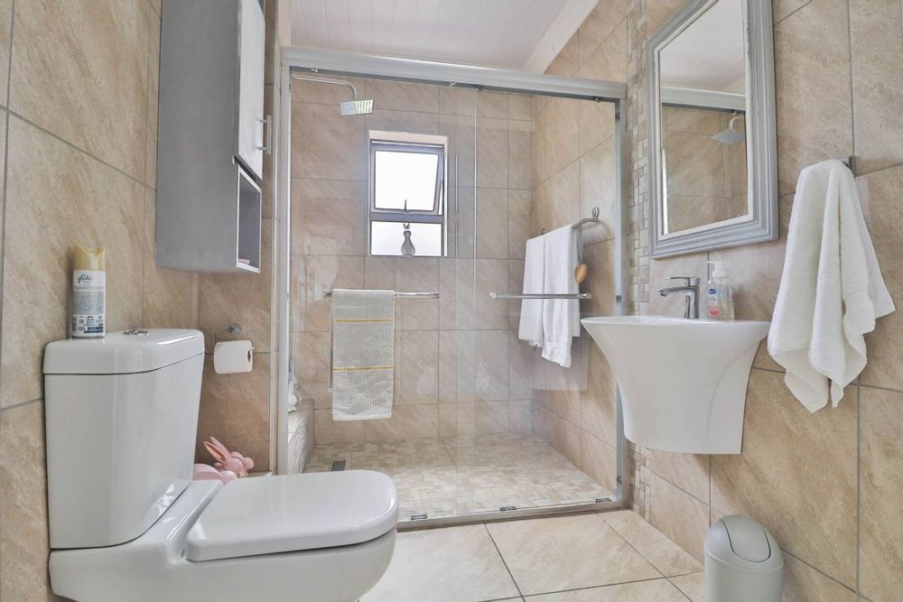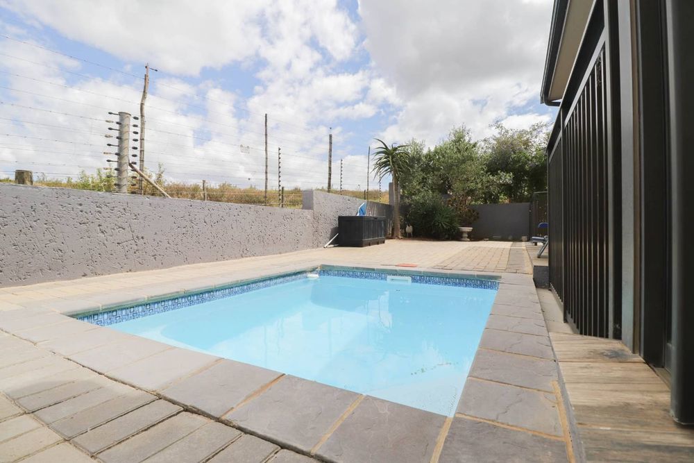 The property upstairs includes three bedrooms and three bathrooms, two of which are en-suite. Each bedroom offers comfort and privacy, ensuring that everyone has their own personal space. The backyard borders the fence of Ounteniquasbosch wild life village, providing a peaceful and picturesque backdrop.