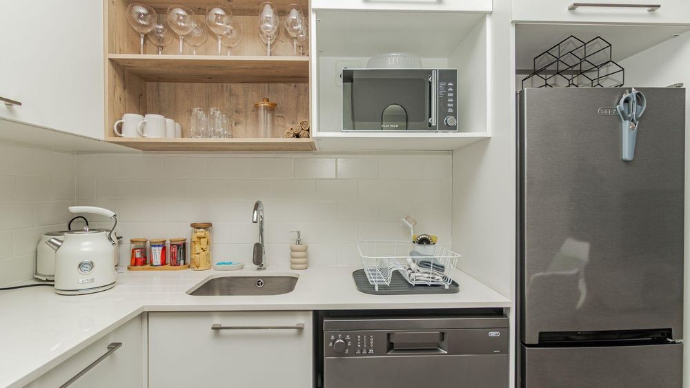 The contemporary design offers an open-plan kitchen and living area that is bathed in natural light, creating a fresh and inviting atmosphere with sea views. Step out onto a private balcony, an ideal spot for enjoying the coastal air. The accommodation features two spacious bedrooms with built-in cupboards and two pristine modern bathrooms, including a main en-suite. Residents and guests benefit from the building’s superior lifestyle amenities, including secure underground parking, lift access to all levels, and a stunning rooftop heated swimming pool that provides breathtaking panoramic sea views.