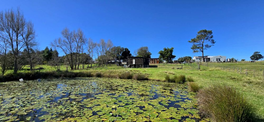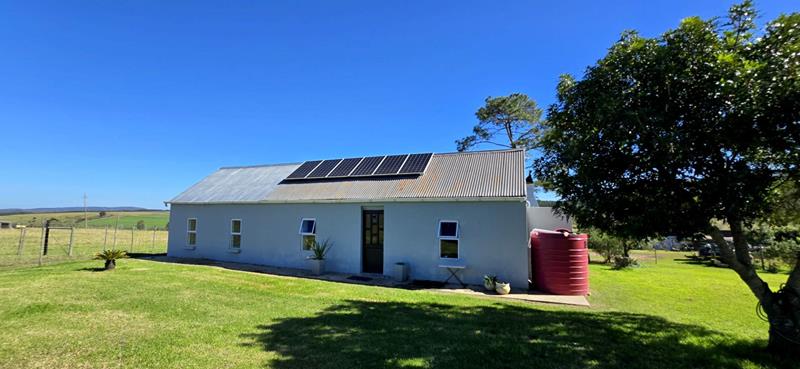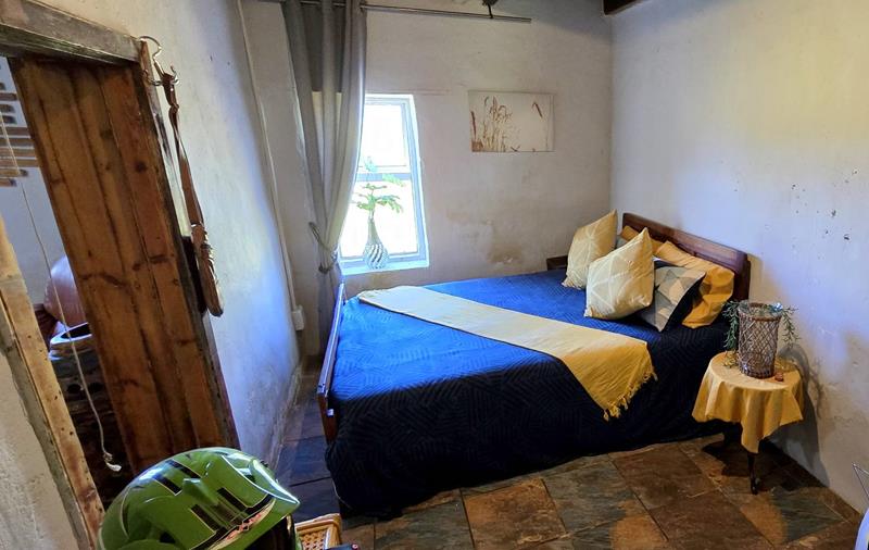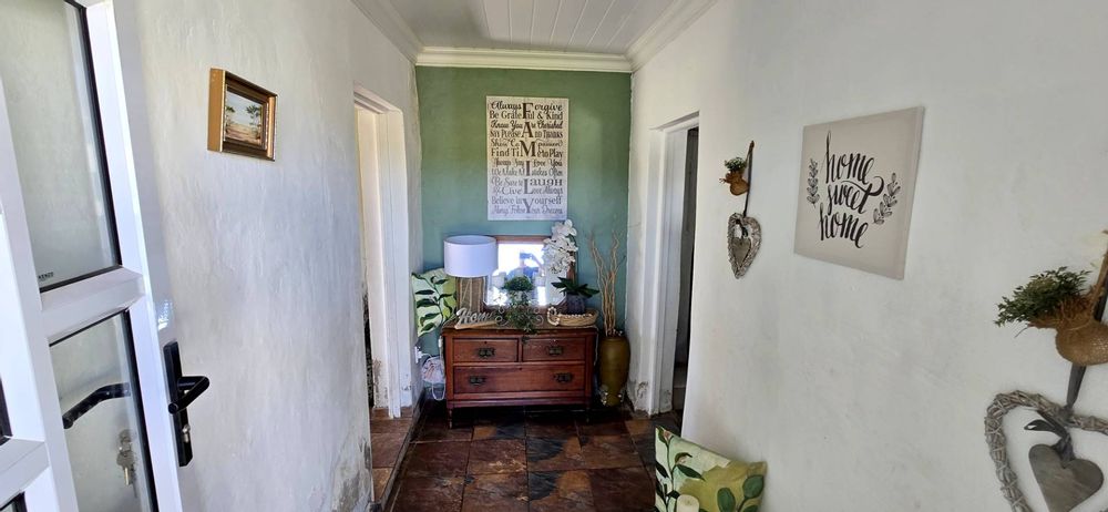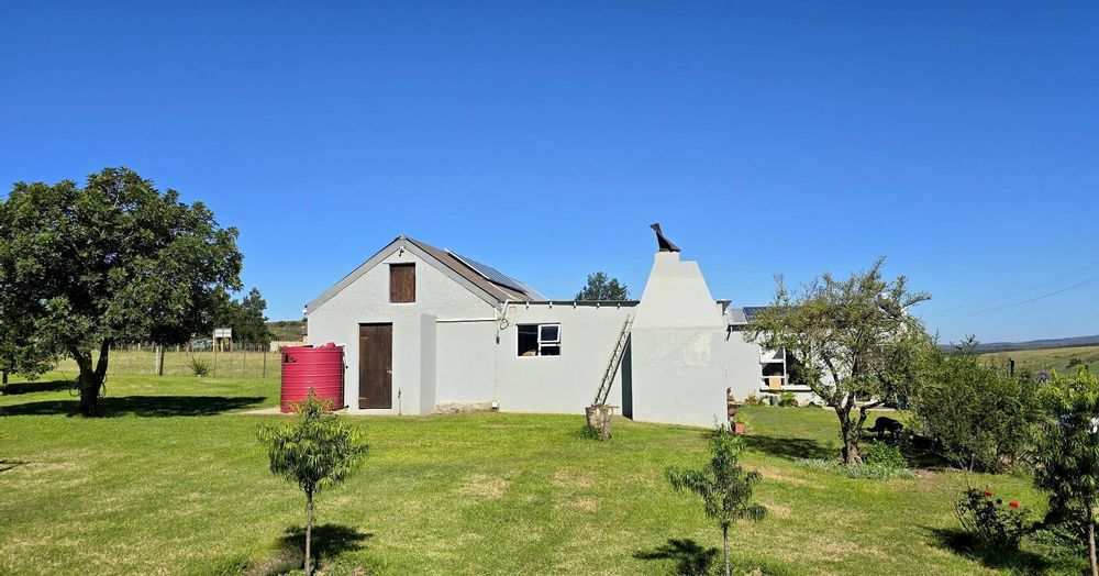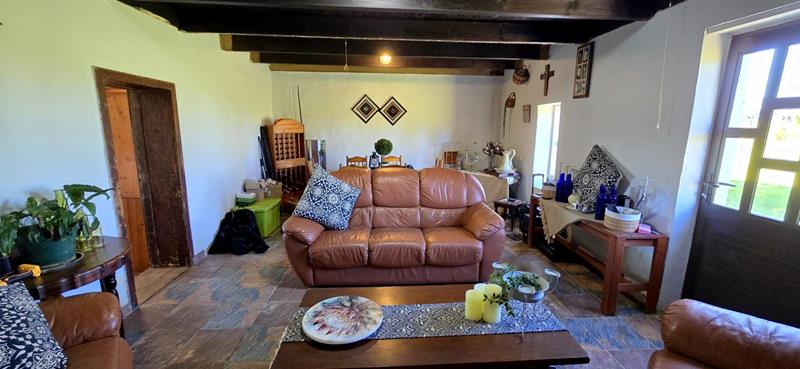 Sitting on a spacious plot with two serene dams, this property boasts a reliable water supply from "luibeurt" rights and rainwater tanks, ensuring sustainability and self-sufficiency. The main house interior has been beautifully remodeled, featuring large bedrooms, two en suite bathrooms, and additional guest facilities. The main bedroom suite offers a luxurious retreat within the home. Notably, the house is equipped with a separate 8kw solar system comprising 13 panels and a 10kWh storage capacity, complemented by a gas geyser for energy efficiency.