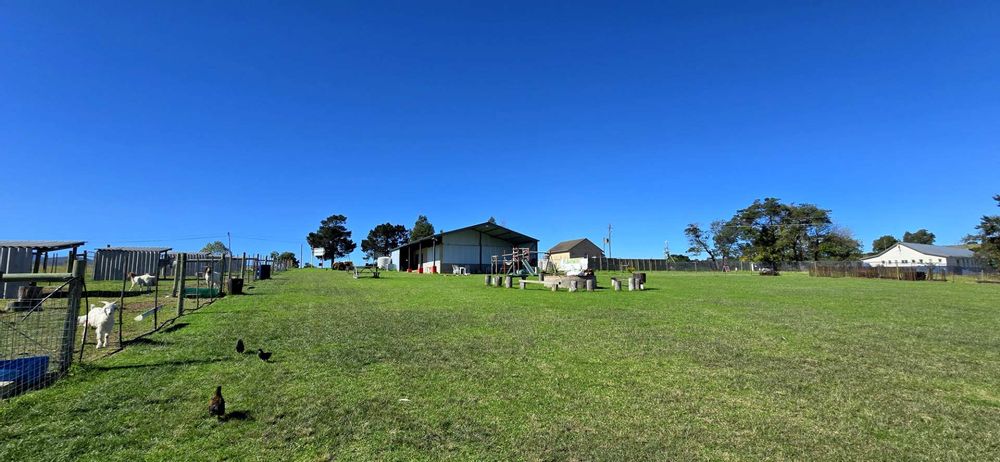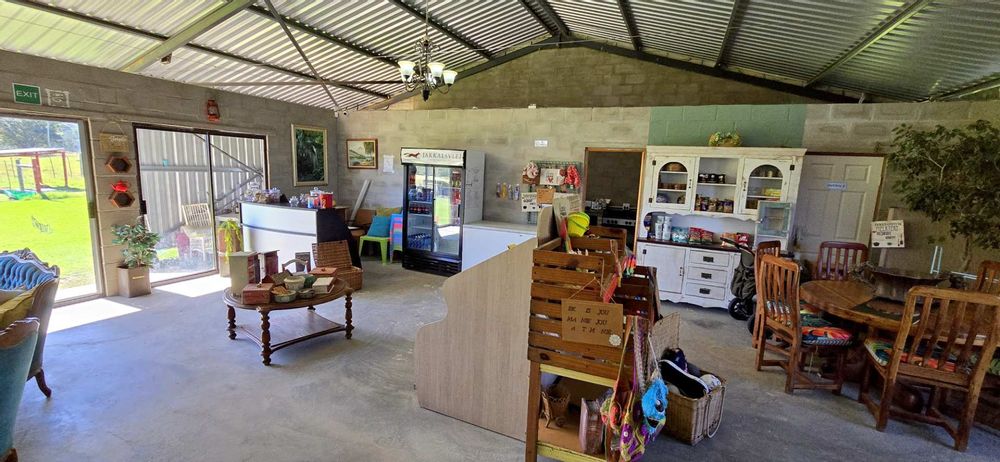 A large 270 square meter venue hall/farm stall has recently been erected for those interested in pursuing business opportunities. Zoning permissions have been granted, allowing for diverse uses of the venue for events, kids' parties, an animal touch farm, or functions, complete with braai facilities and outdoor fireplaces. There is also an option to purchase a separate solar power system dedicated to the venue hall.