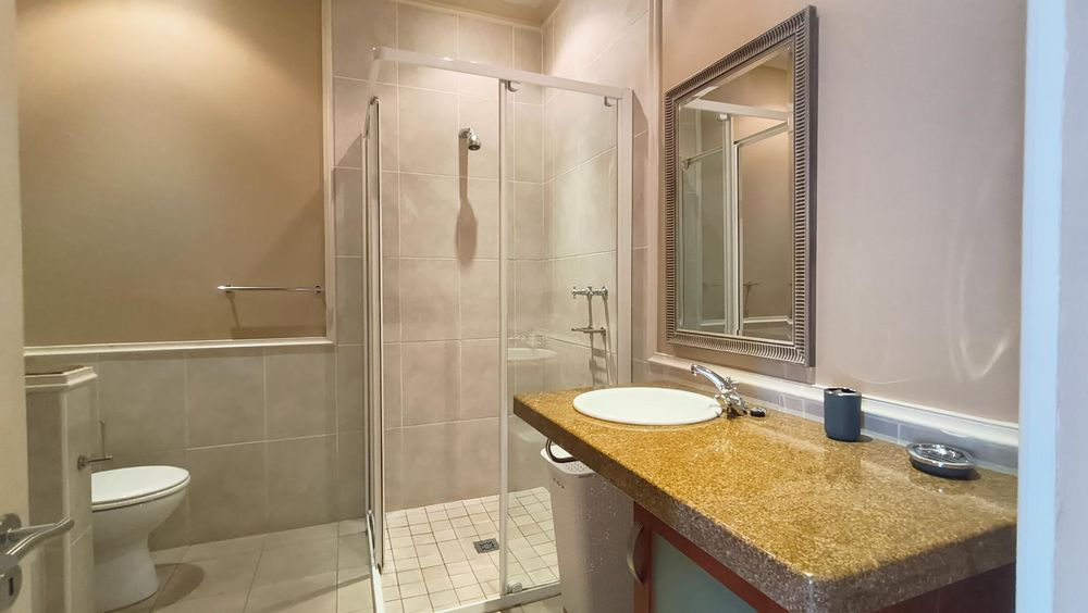 On the lower level, you'll find an enclosed patio equipped with a built-in braai, offering an exceptional space for entertaining guests. Whether you're hosting a family gathering or a casual get-together with friends, this area is sure to be a favorite spot for making memories.