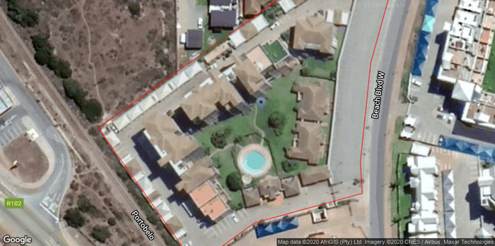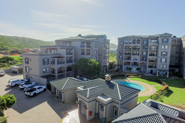 Seaside living steps from Diaz Beach and the Super Tubes on the Garden Route, with an ocean-view balcony overlooking pool and gardens; three bedrooms, two baths and garage.