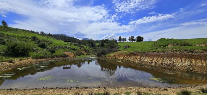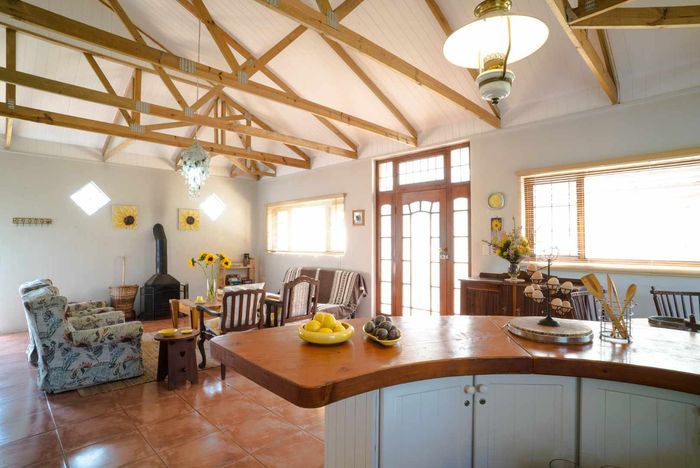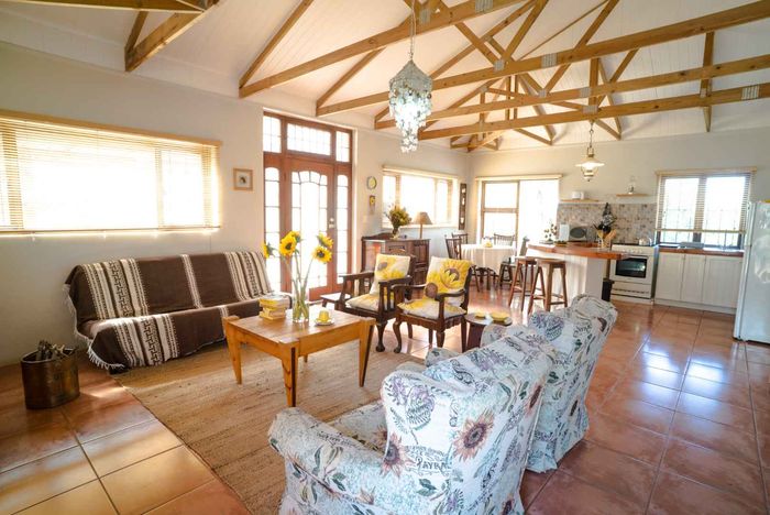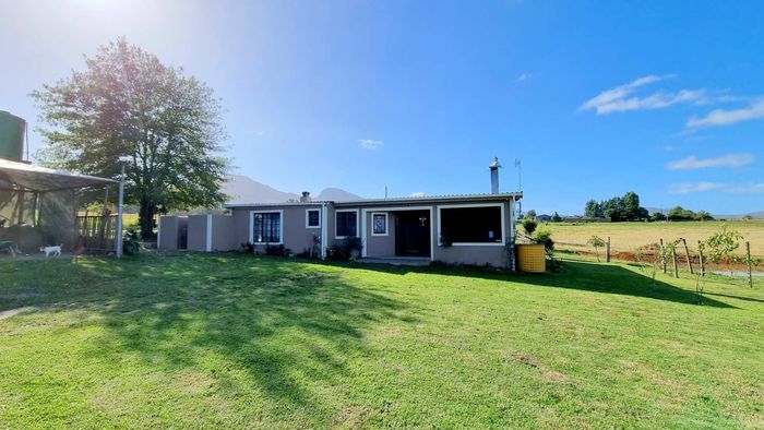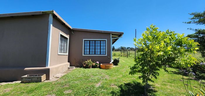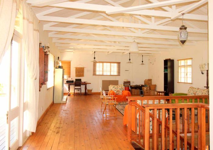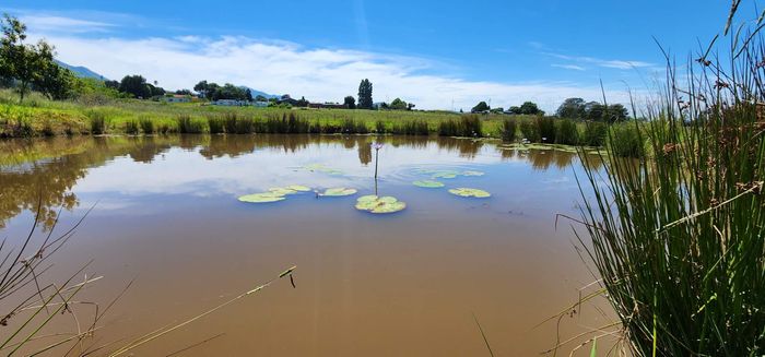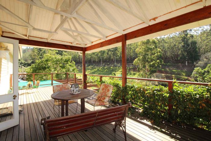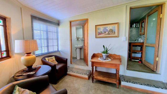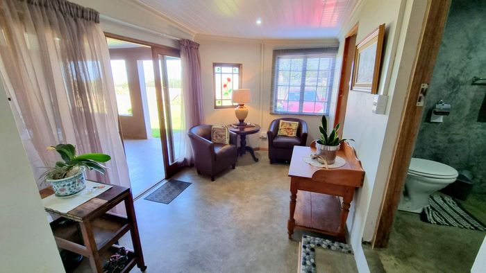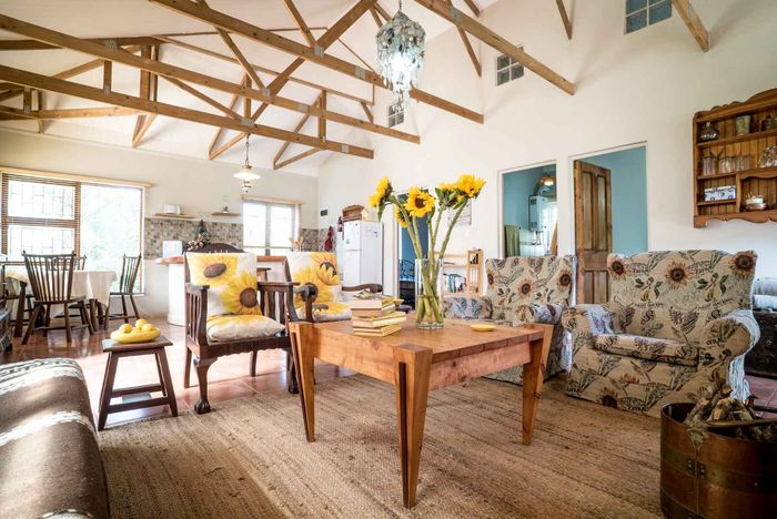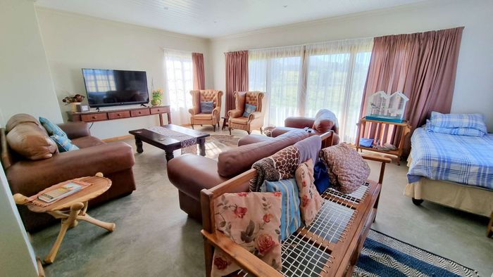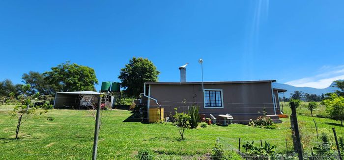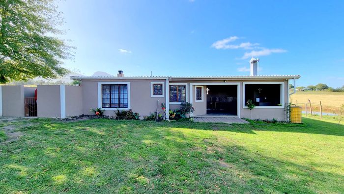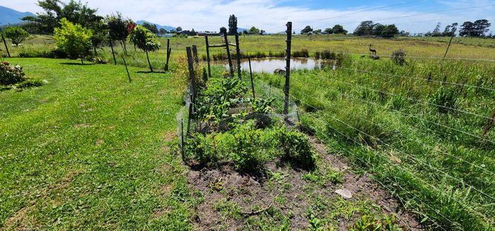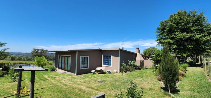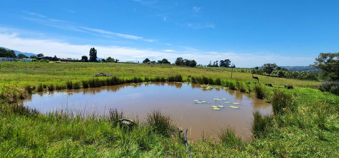 Escape to rural tranquillity in Leeuwekloof Valley, close to Hartenbos with Outeniqua Mountain views; thriving gardens, three dams and rentable cottages — nine beds, six baths, four garages.