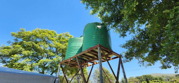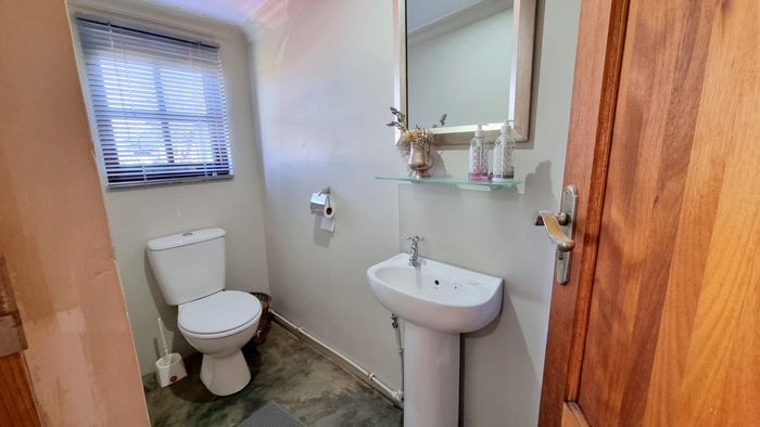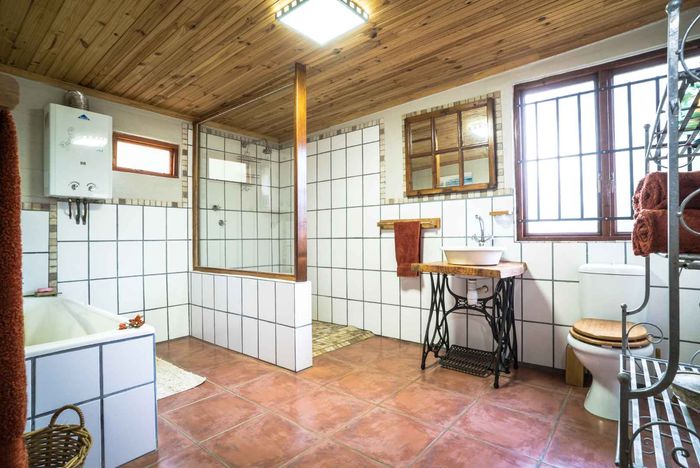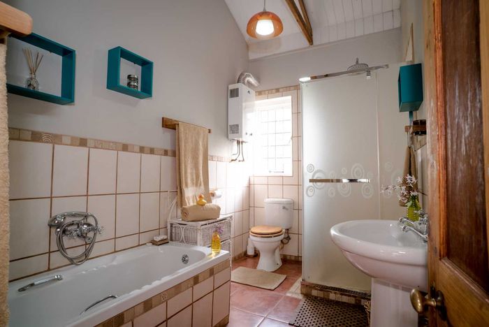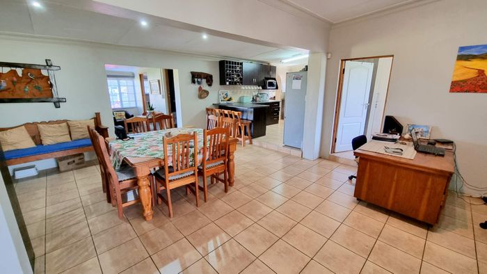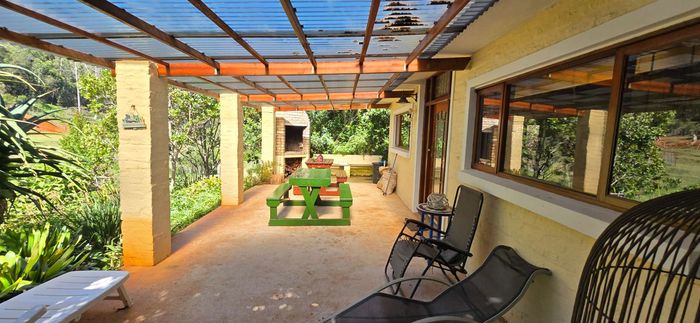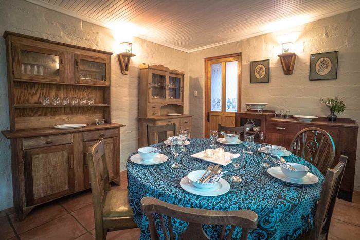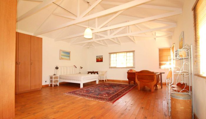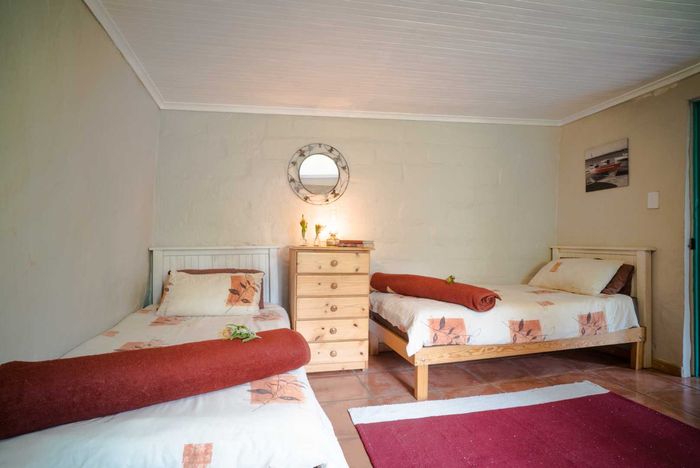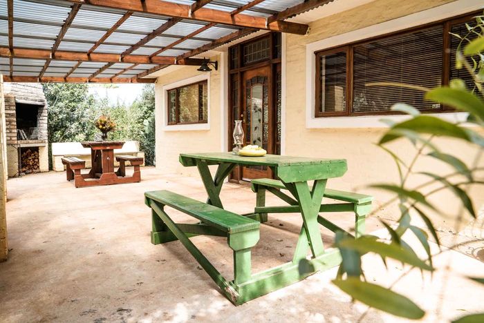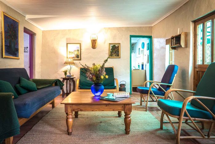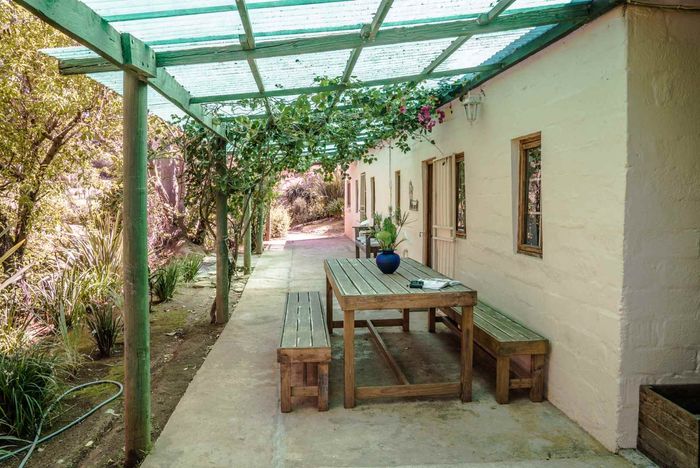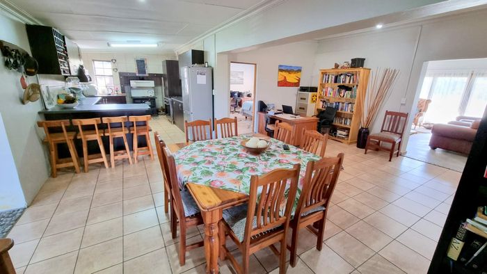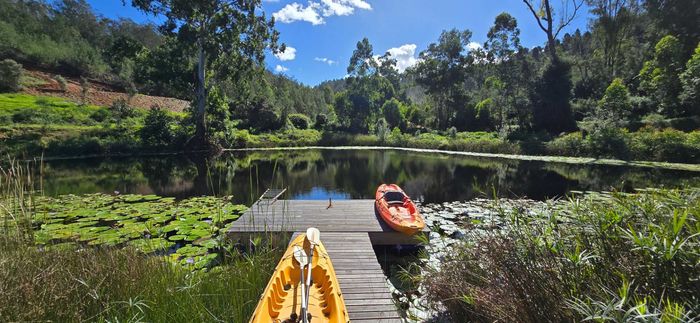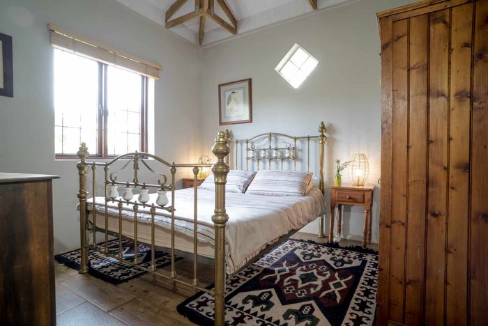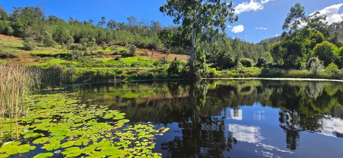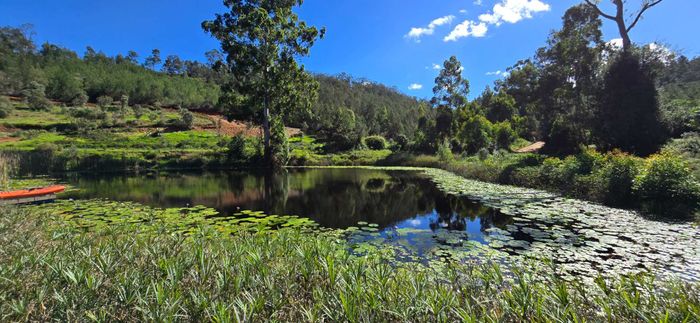 Escape to rural tranquillity in Leeuwekloof Valley, close to Hartenbos with Outeniqua Mountain views; thriving gardens, three dams and rentable cottages — nine beds, six baths, four garages.
