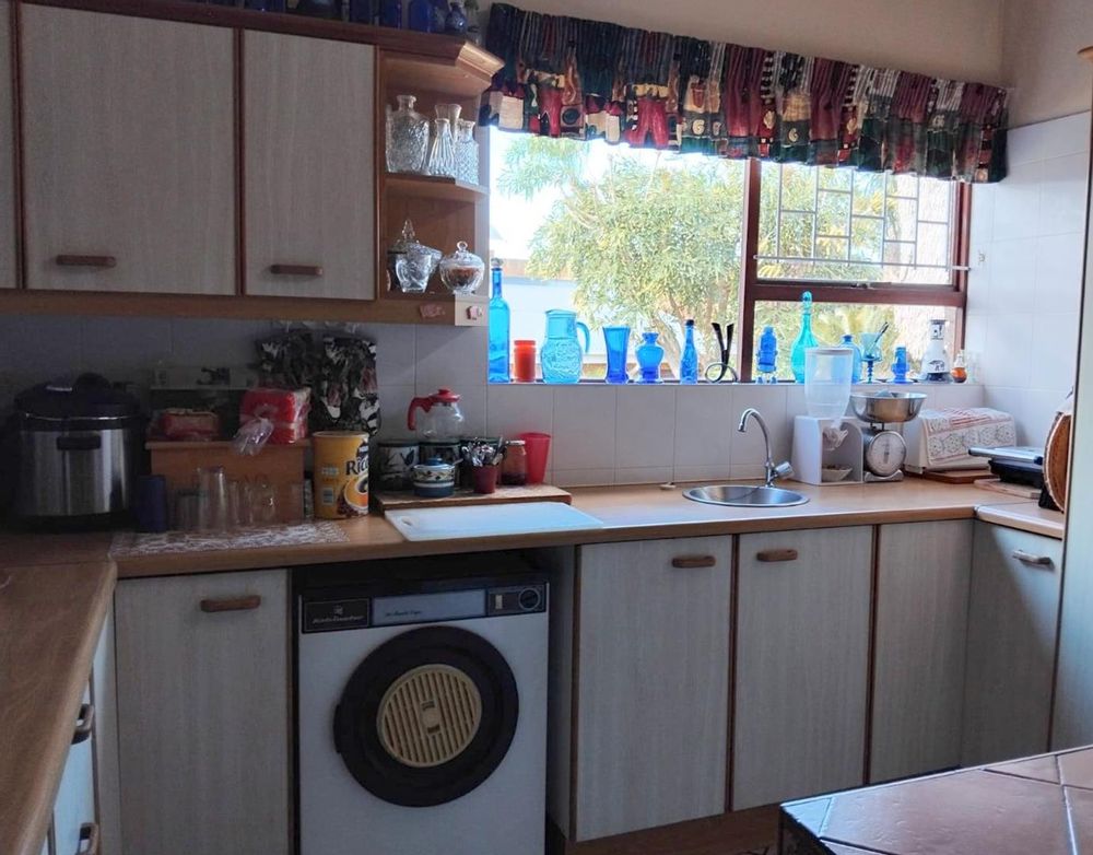 Step inside to discover an inviting open-plan kitchen, complete with wall-to-wall built-in cupboards and a modern gas stove and electric oven, ideal for culinary adventures. The home features three charming bedrooms and two well-appointed bathrooms. The main bedroom boasts an en-suite bathroom, while the second bathroom conveniently serves the other two bedrooms.