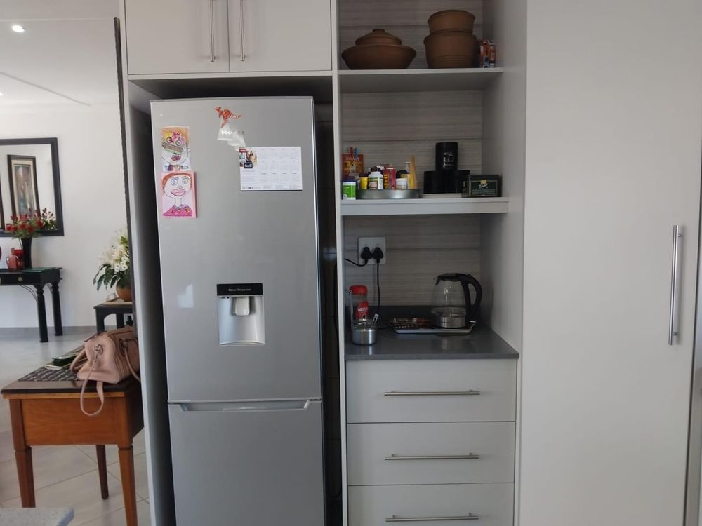 Upon entering this elegant abode, you're greeted by a spacious living area that flows effortlessly into a modern open-plan kitchen. Tailored for culinary enthusiasts, the kitchen features a central island, Caesarstone countertops, and ample built-in cupboards. An electric stovetop complements the sleek design, while stack doors in the dining area open to a delightful balcony—an ideal setting for al fresco dining with picturesque mountain vistas as your backdrop.