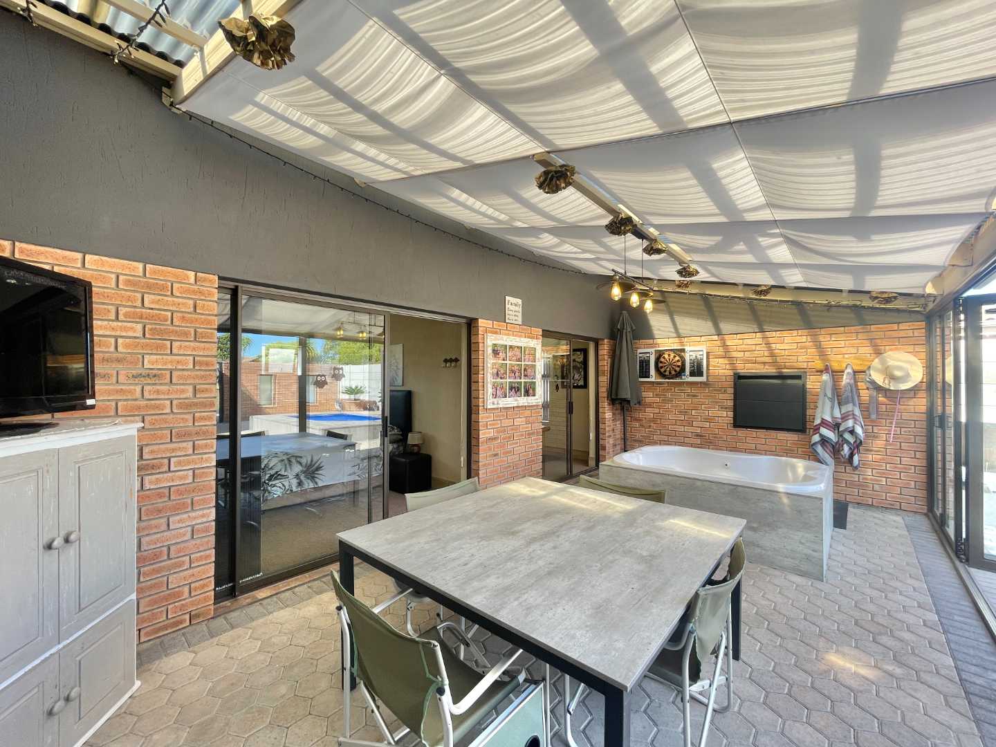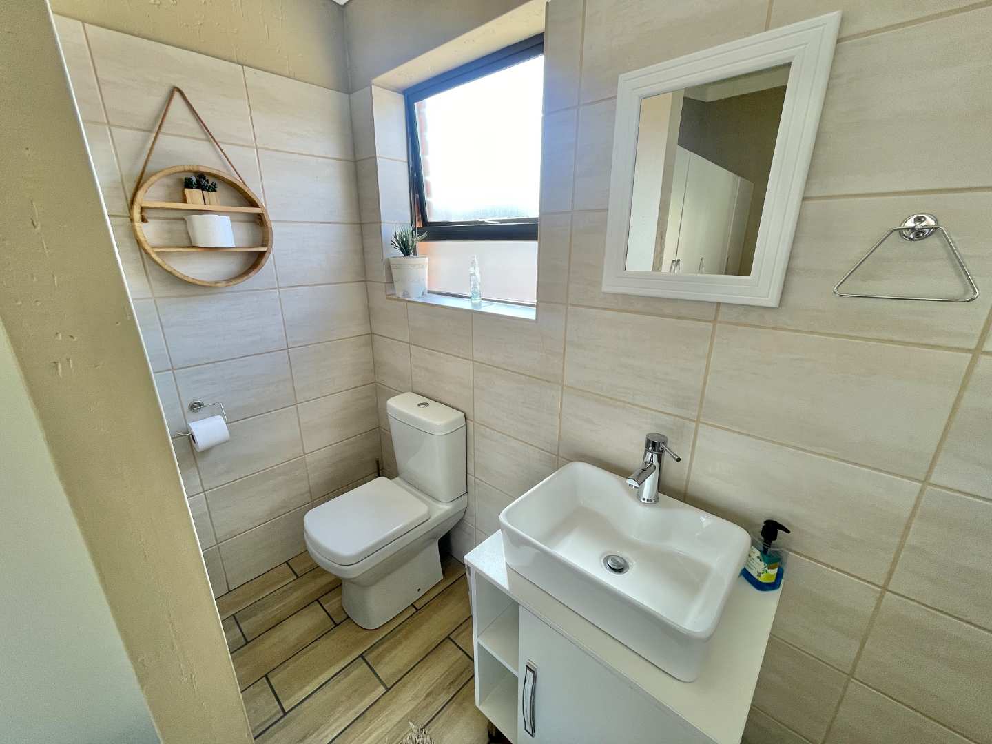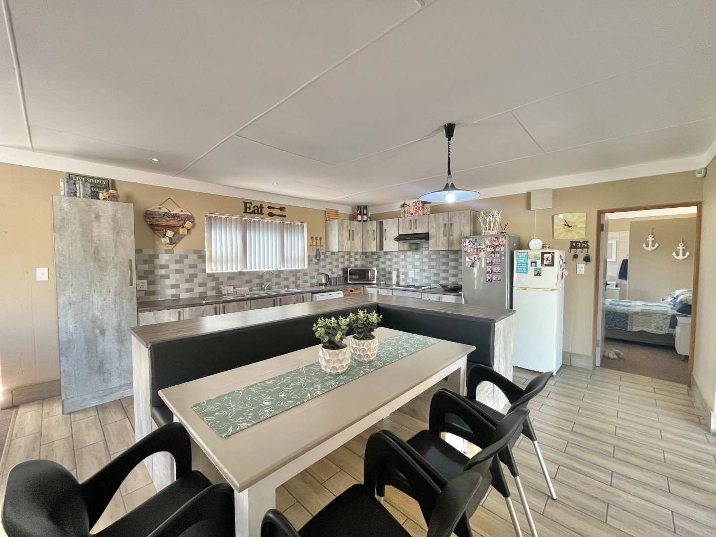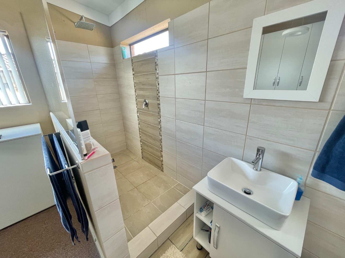 The home offers three generous bedrooms, each with its own private en-suite bathroom, as well as a flexible fourth room that can easily serve as a guest bedroom, home office, or study. An inviting enclosed braai and stoep area creates the ideal setting for entertaining, featuring a relaxing hot tub and seamless access to a private splash pool—perfect for unwinding after a day at the coast.