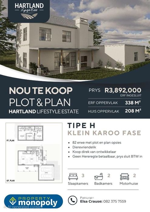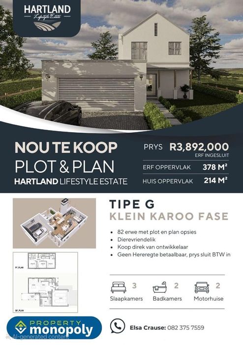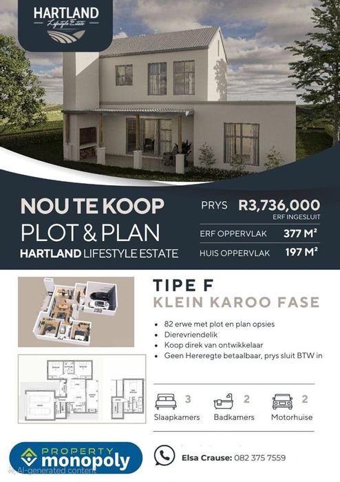 Embrace Klein Karoo living in Hartland — secure gated estate with walking trails and roaming springboks, north-east pet-friendly garden, thoughtful 3-bed, 2-bath home (double garage).