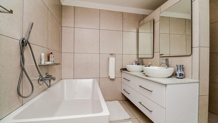 Peaceful Hartland Estate living with 24-hour security, fiber internet, and a fully grassed private garden overlooking the nature reserve — pet-friendly. Two bedrooms, two bathrooms, double garage.