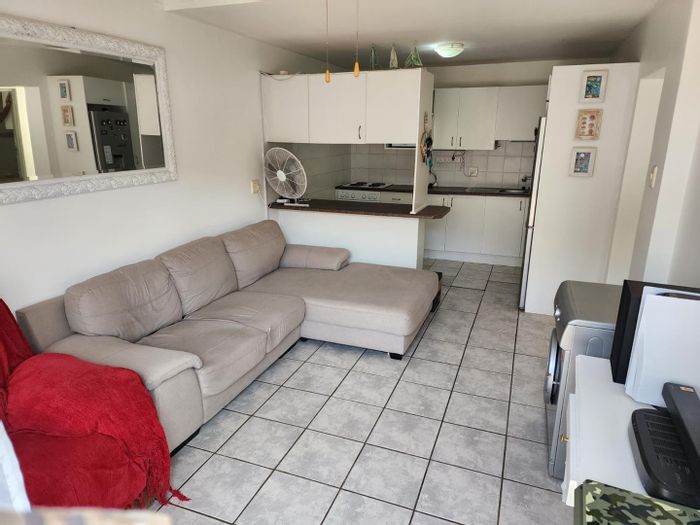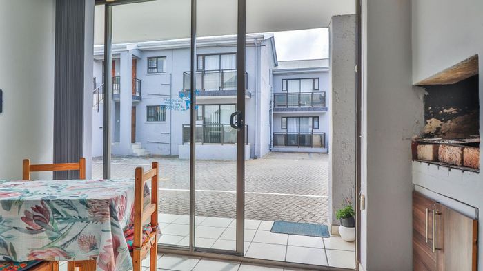 Beachside living steps from Hartenbos Seafront and Blue Flag beach, with local mall convenience. Secure gated apartment offers open-plan kitchen, indoor braai and two bedrooms, one bathroom, undercover parking.