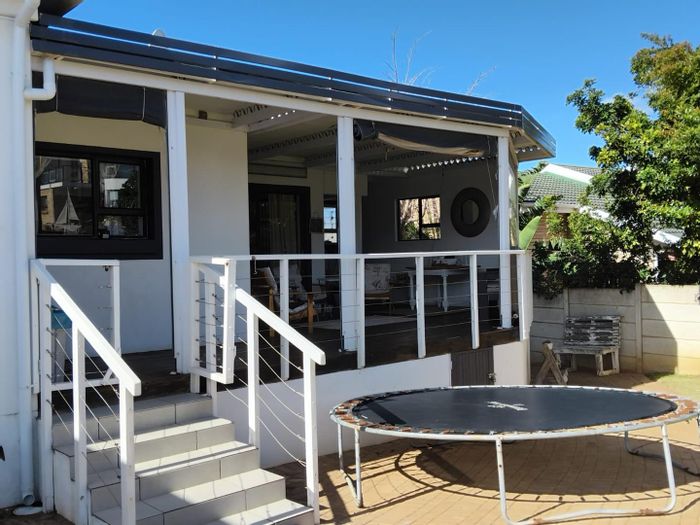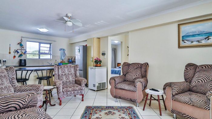 Relaxed Garden Route lifestyle in Hartenbos, steps from the Blue Flag seafront — mature private garden and braai deck, plus a one-bed flat; four bedrooms, three baths.