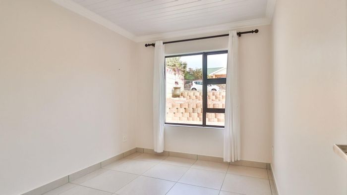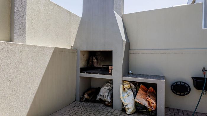 Embrace active, secure estate living with nature reserve trails and community charm near Garden Walk Mall; corner home has sunny balcony, approved braai, 3 beds, 2 baths, double garage.