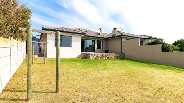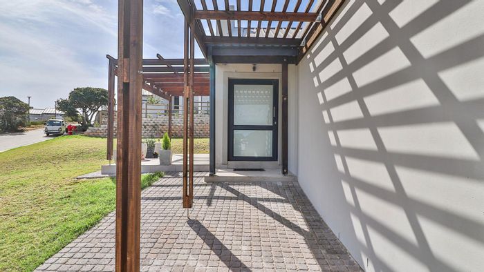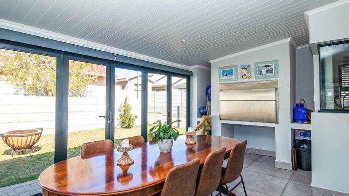 Coastal estate living in Monte Christo Eco Estate, Hartenbos — effortless indoor-outdoor entertaining with covered verandah and built-in braai, pet-friendly garden; three bedrooms, two bathrooms, double garage.