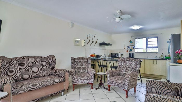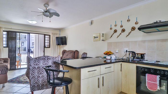 Coastal convenience near Hartenbos Blue Flag Beach in a secure, vibrant complex — north-facing unit with private verandahs, covered braai area, fiber, two bedrooms and one bathroom.