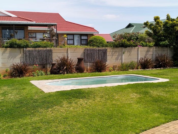 Relaxed coastal living in sought-after Hartenbos with open-plan entertaining, sunlit patio offering scenic views and built-in braai; established garden with tanks, three double bedrooms, two bathrooms, double garage.