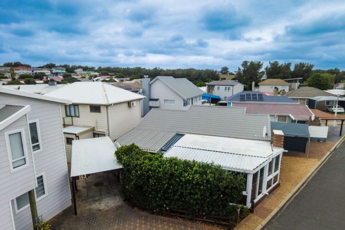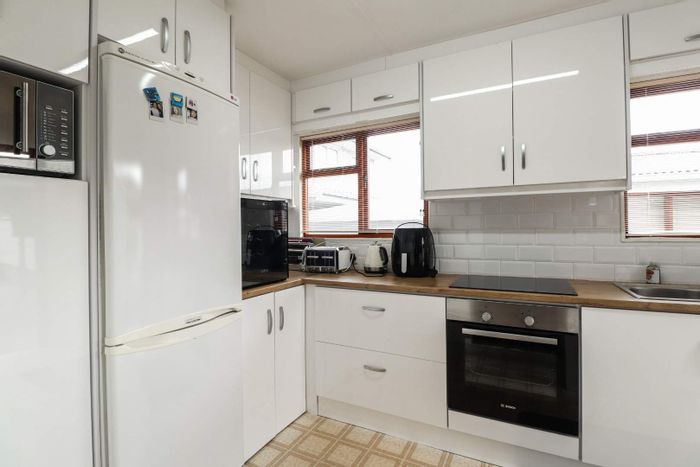 Beachside living steps from Hartenbos Seafront and Blue Flag beach, with local mall convenience. Secure gated apartment offers open-plan kitchen, indoor braai and two bedrooms, one bathroom, undercover parking.