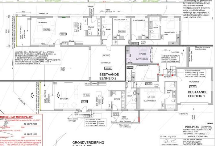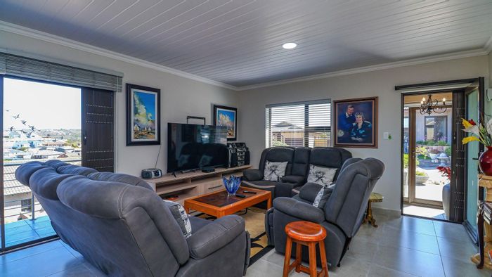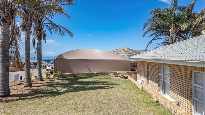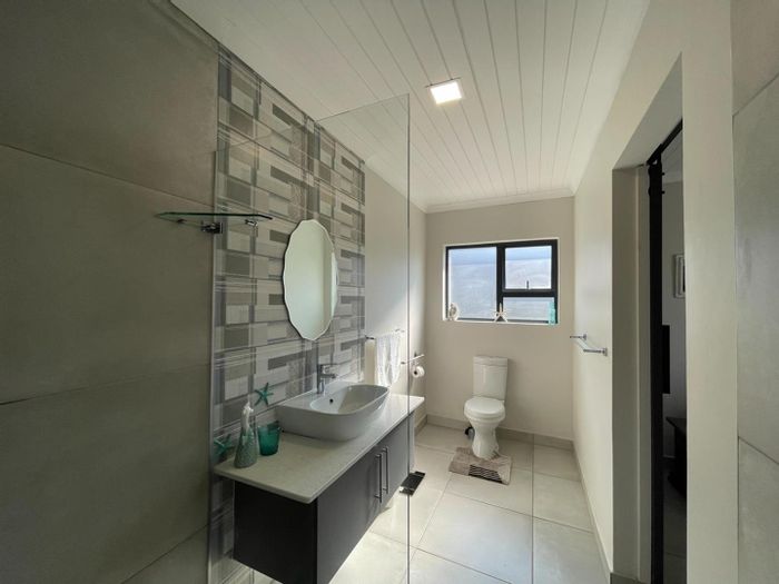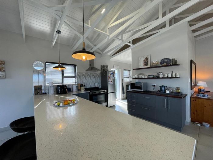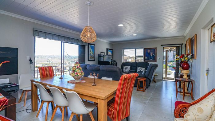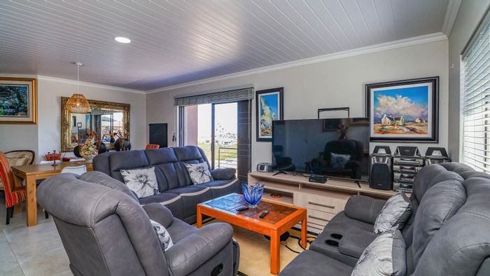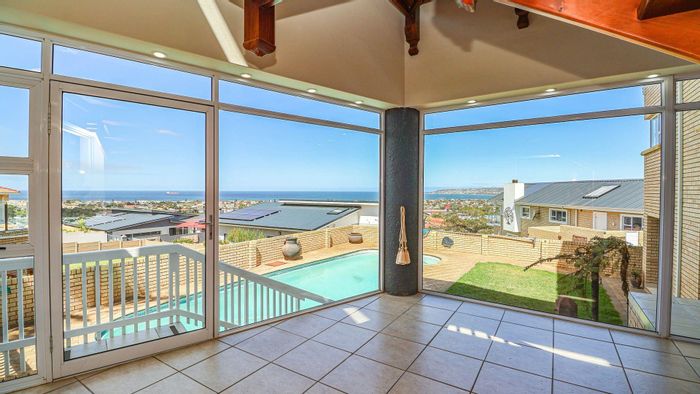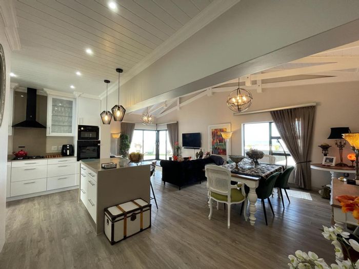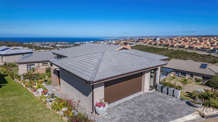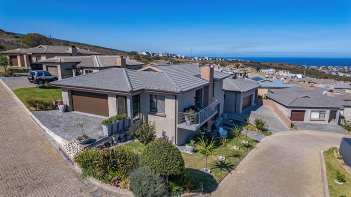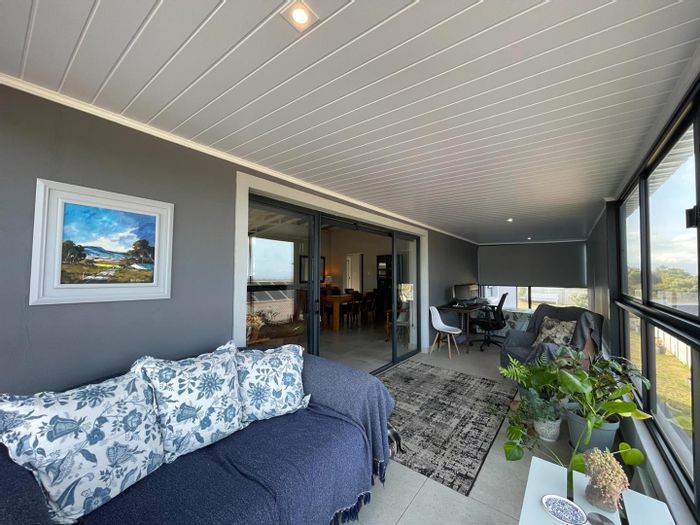 Seaside family living on the Garden Route in Tergniet, between George and Mossel Bay, with a 360-degree rooftop view, indoor braai, lush irrigated garden; four beds, four baths, double garage.