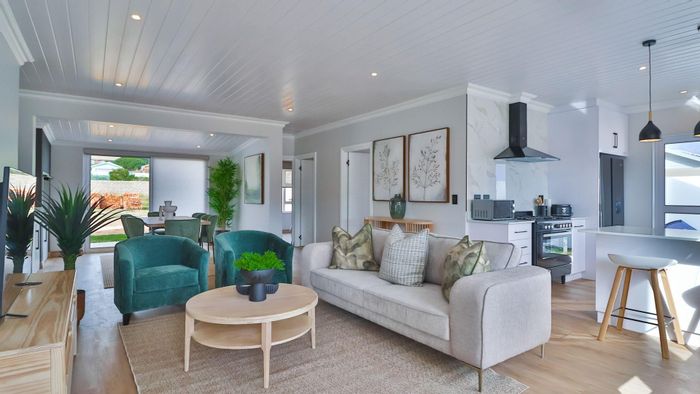 Embrace relaxed Garden Route living at Klipheuwel Estate in Klein Brakrivier, featuring open-plan living, a high-end modern kitchen, private outdoor space and energy-efficient design — three beds, two baths, double garage.