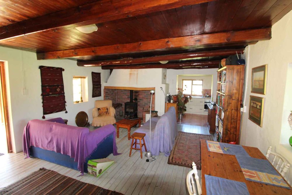 Additionally, there is a charming cottage offering two bedrooms and a 180-degree view over the Leeuwekloof valley, perfect for guests or as a holiday rental. A second older 3 bedroom farmhouse, located 400m from the main house at a lower elevation, features an original fireplace and its own solar system.