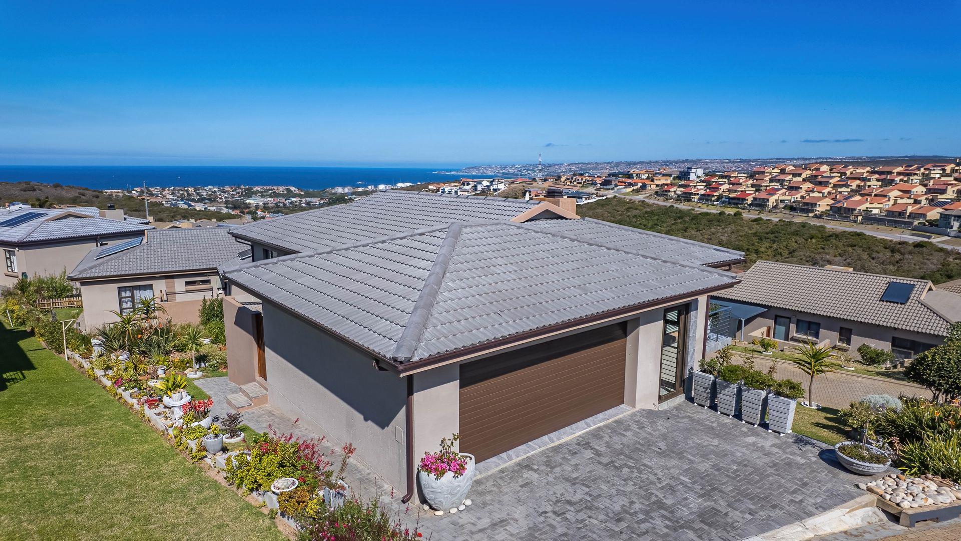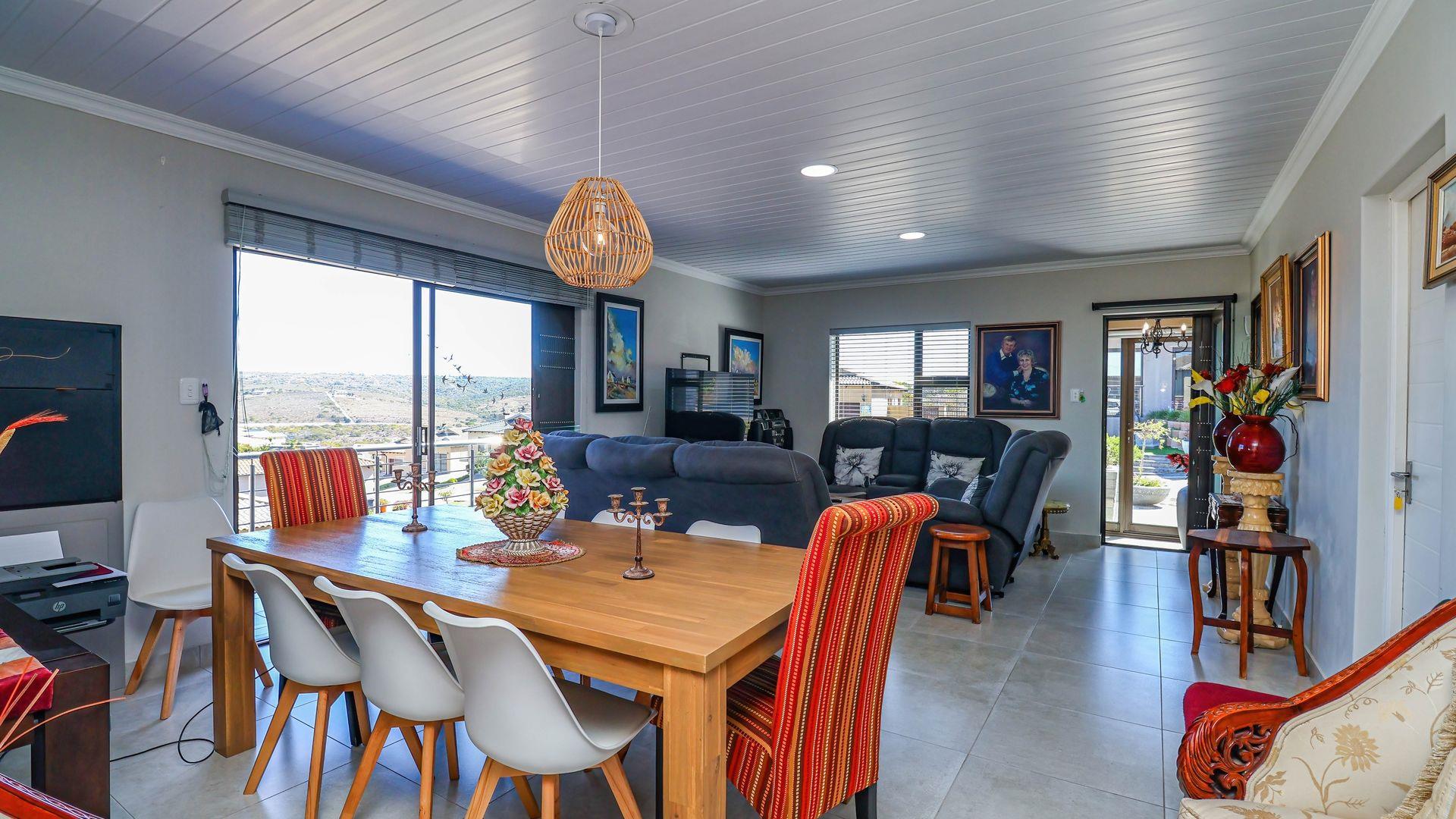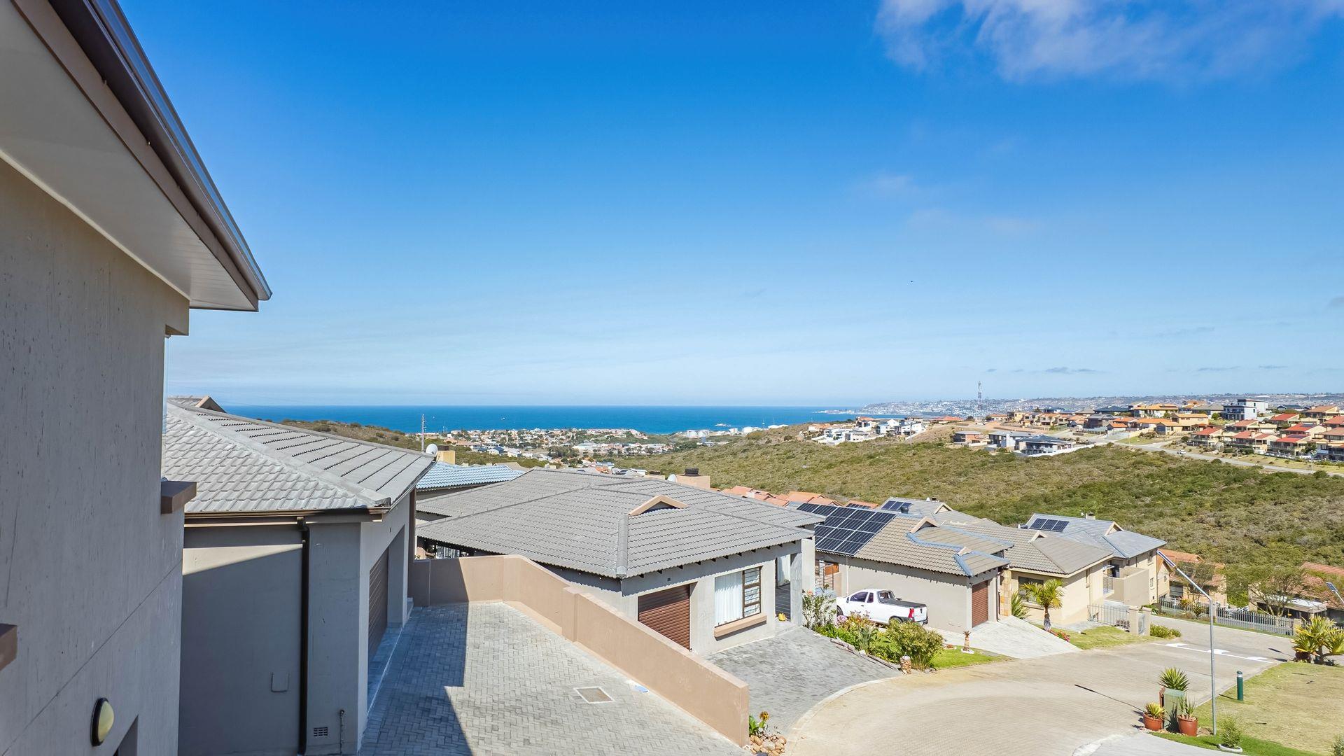 Upon entry, you are greeted by an open plan living area that seamlessly flows into a modern, functional kitchen. The kitchen is a culinary delight, featuring a gas stove, electric oven, and luxurious marble countertops. Adjacent to the living area is an entertainment room designed for ultimate leisure, equipped with a built-in braai. The braai area extends through a sliding door onto a balcony area, offering stunning sea views that provide the perfect backdrop for relaxation or entertaining guests.