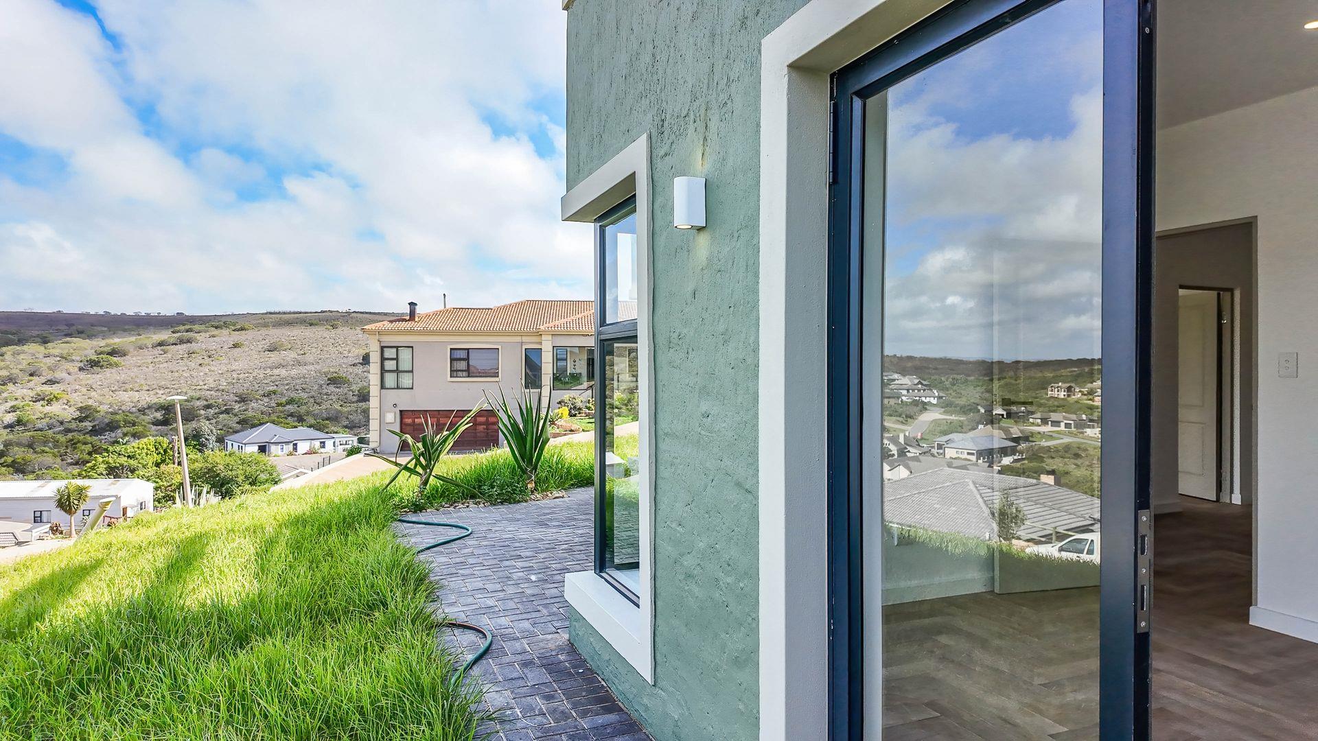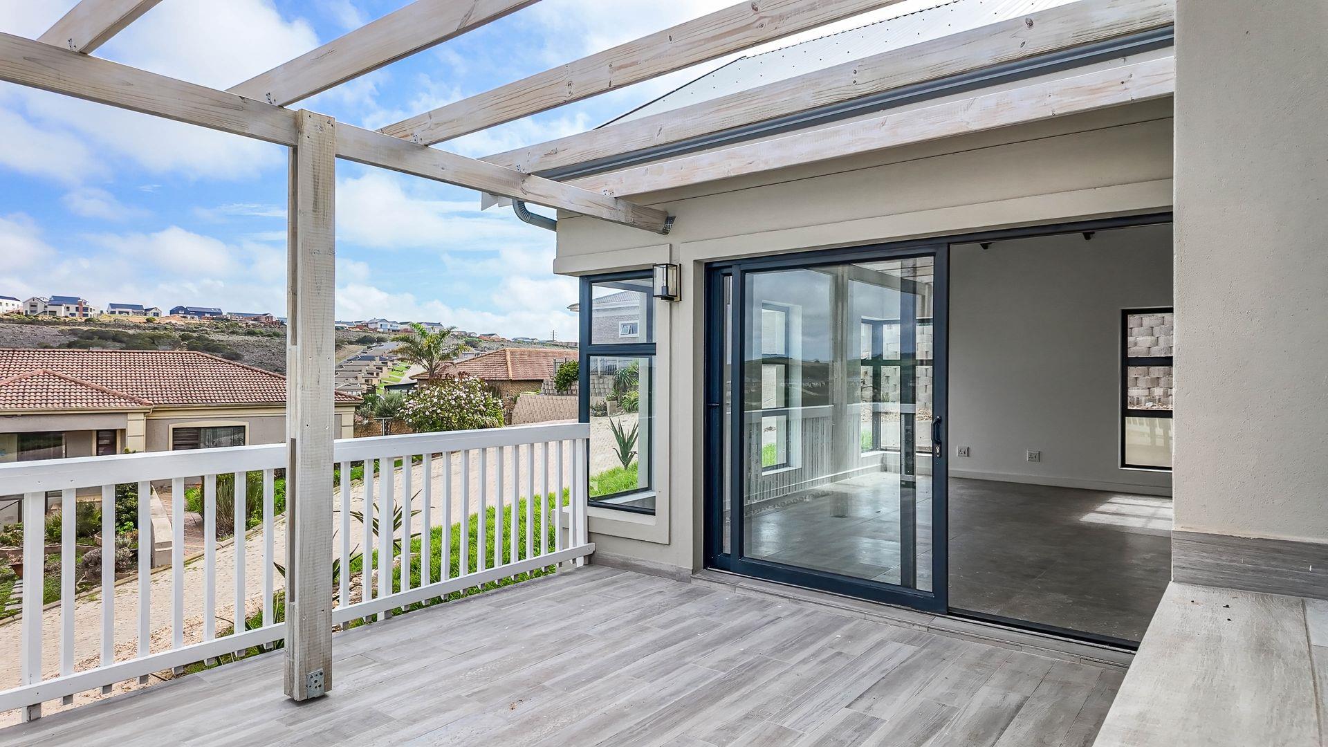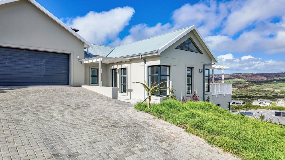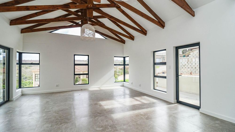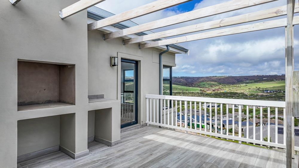 The spacious living area opens through two large sliding doors to a patio with a built-in braai, ideal for entertaining family and friends or simply enjoying Mossel Bay’s coastal charm.