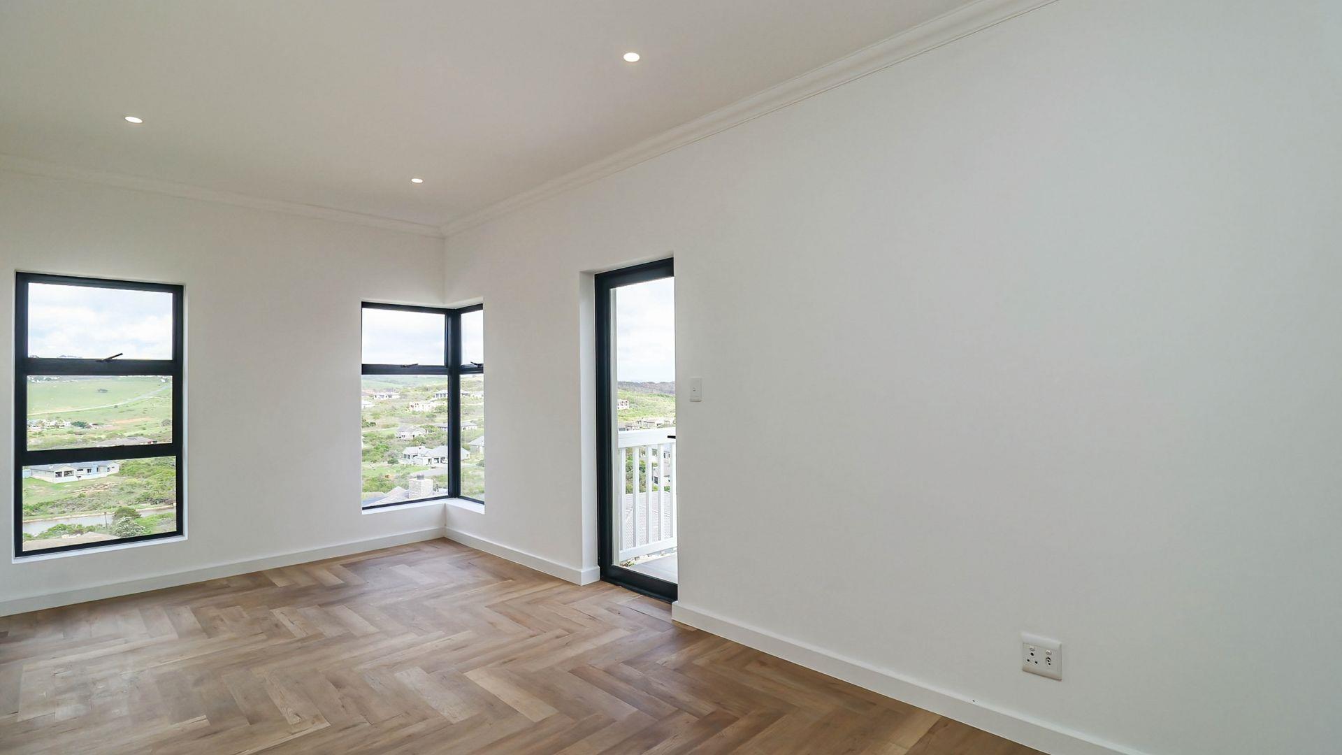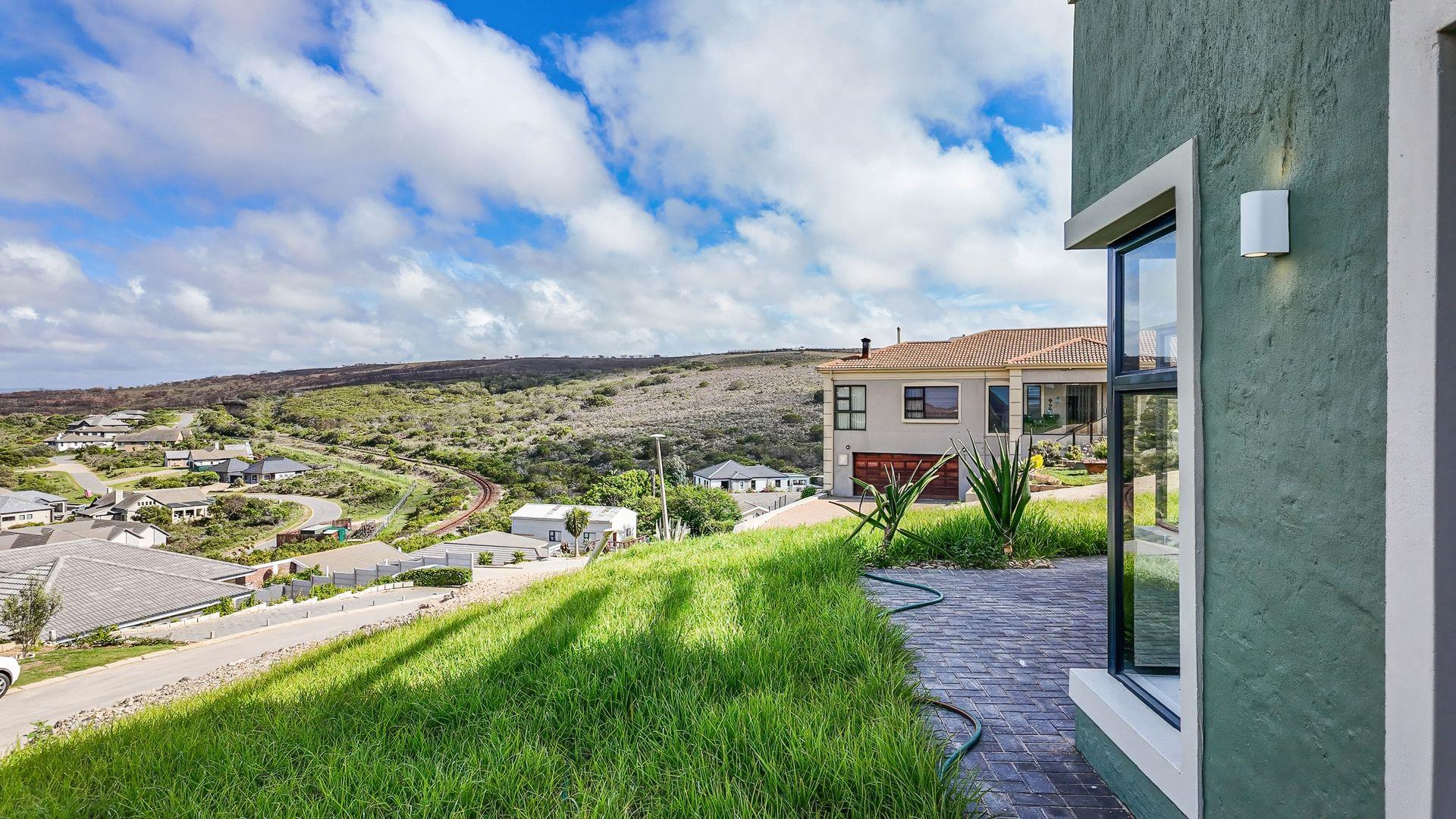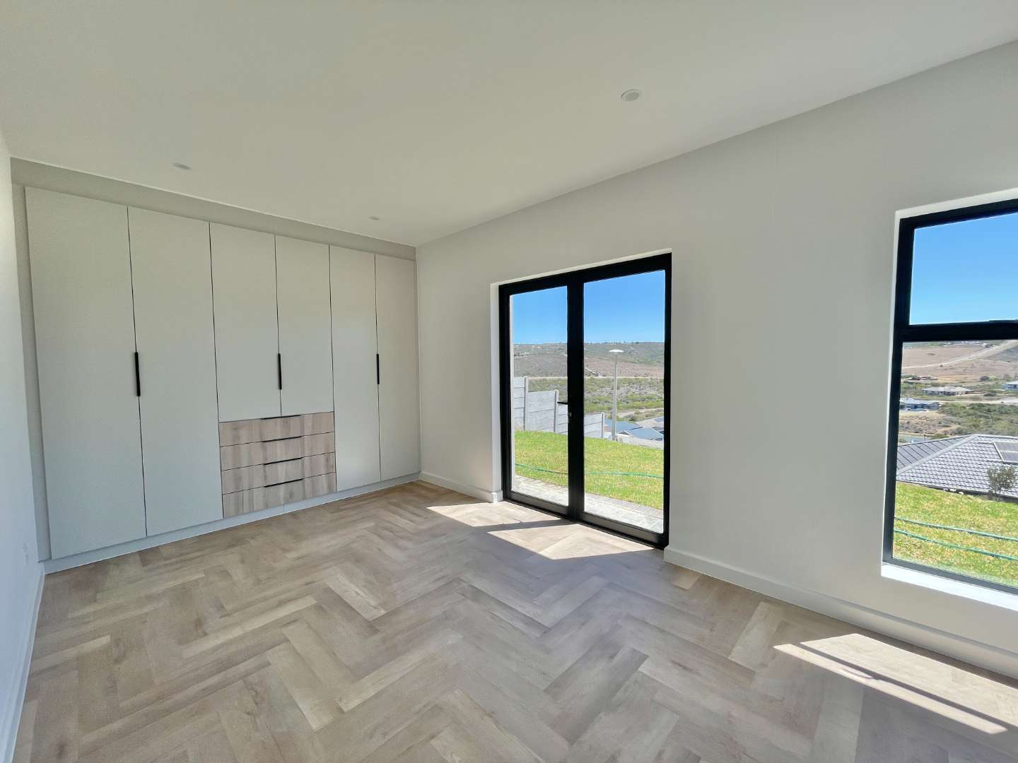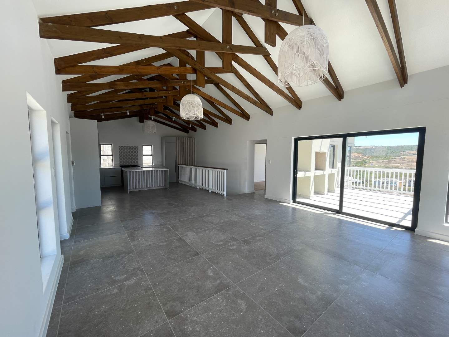 The spacious living area opens through two large sliding doors to a patio with a built-in braai, ideal for entertaining family and friends or simply enjoying Mossel Bay’s coastal charm.