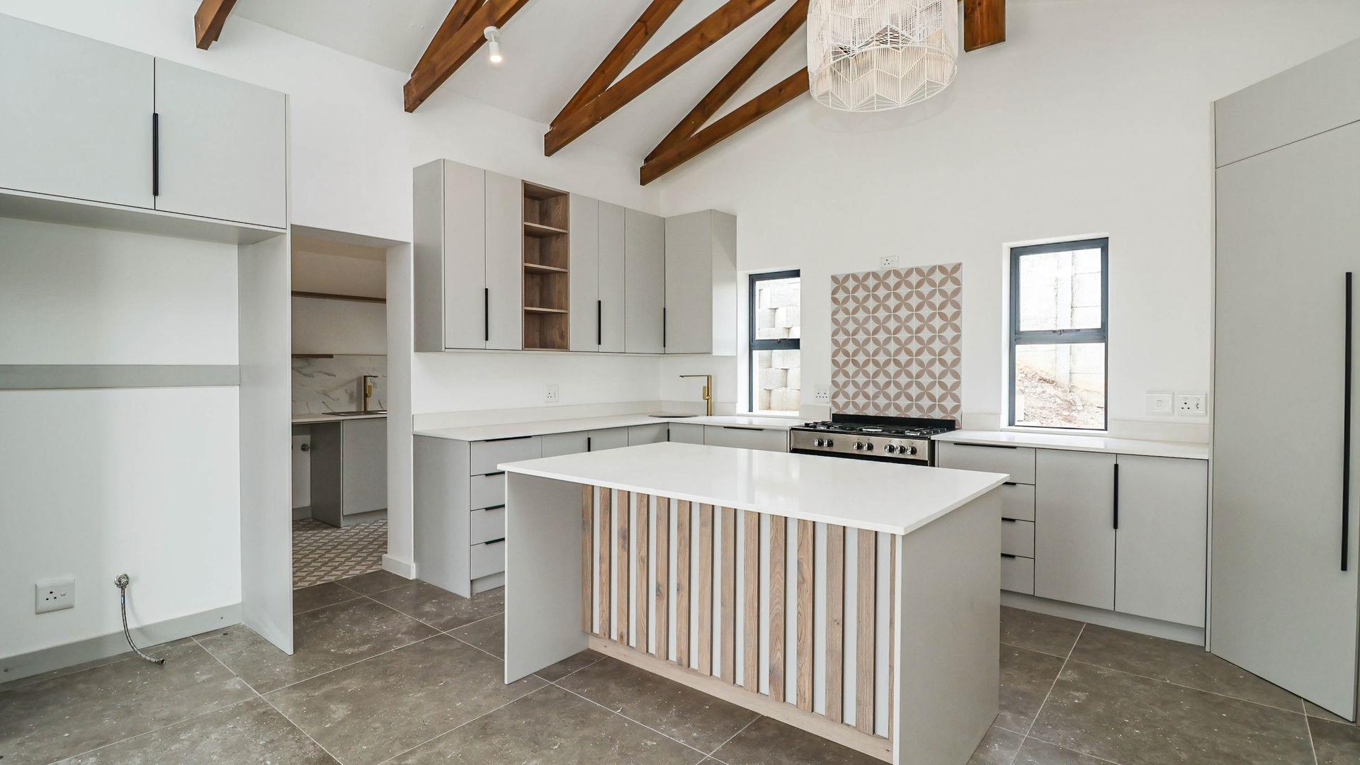 Step inside and be captivated by the seamless open-plan layout where the kitchen, dining, and lounge areas flow effortlessly together. The modern kitchen boasts ample cupboards and a separate scullery with space for all your essential appliances — the perfect combination of functionality and style.